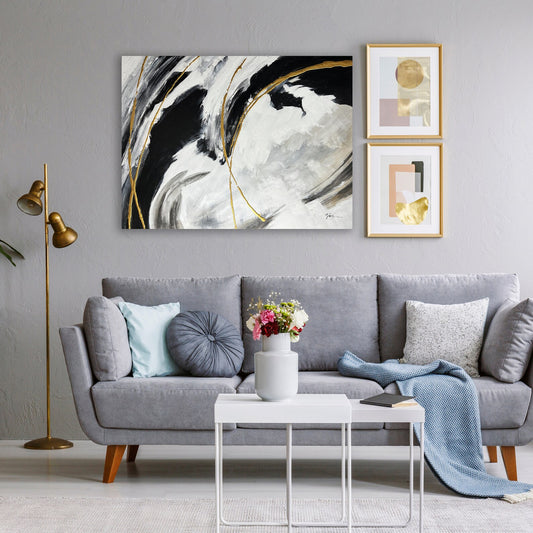 Hand-painted Original Art "Abstract Golden Waves" Canvas Wall art for living room, bedroom, office - Wrapped Canvas Painting
