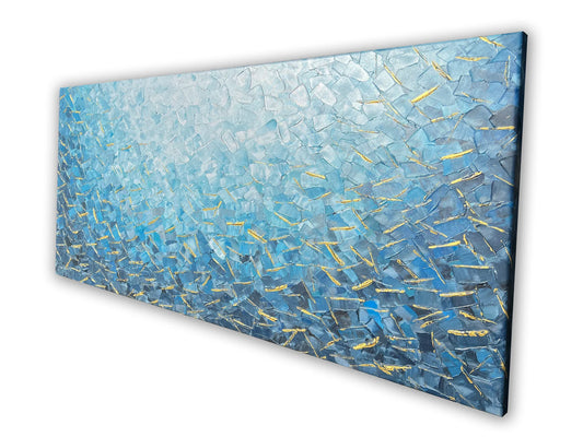 Abstract Hand-painted "Aqua Dreams: A Study of Sunlight and Ocean" Oil painting, Modern artwork- Wrapped Canvas Painting