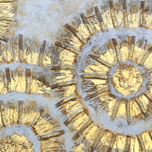 "Shiny Gold Circles Abstract Art" Hand Painted on Wrapped Canvas