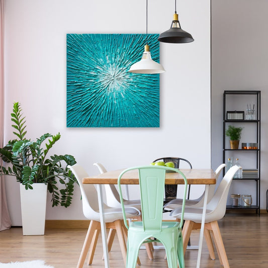 3D Hand Painted Heavy Textured Abstract Art "Blue Sky in Square Design" painting on canvas original - Wrapped Canvas Painting