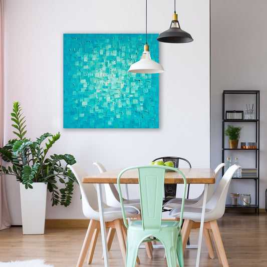 3DHand Painted Heavy Textured Abstract Art "Blue Water Reflection" painting on canvas original- Wrapped Canvas Painting