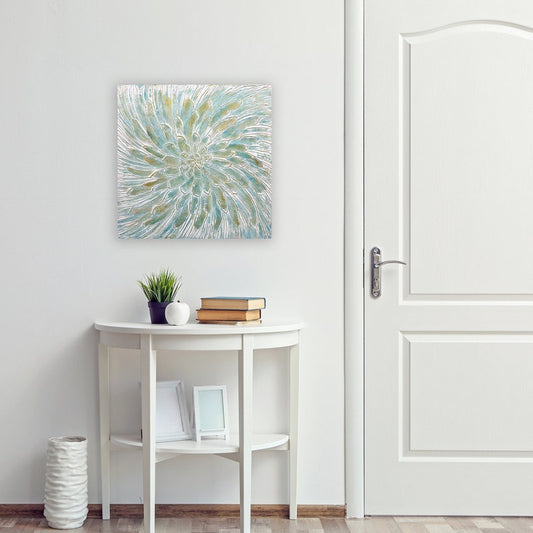 Abstract Hand Painted "Silver Flowers on Blue Background" Oil Painting, Modern Artwork - Wrapped Canvas PaintingRegular price $252.85 USDRegular priceUnit price / per-