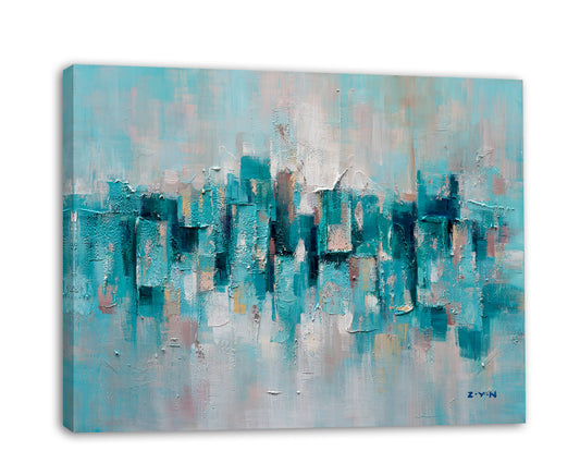"Abstract Turquoise Lake" Hand Painted on Wrapped Canvas
