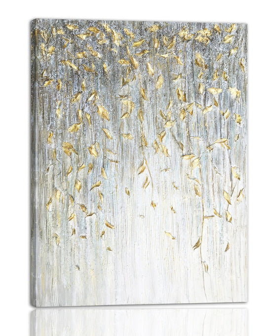 Hand-Painted "Fall Gold Leaves" painting on canvas original Art, Wall art for living room bedroom office - Wrapped Canvas Painting
