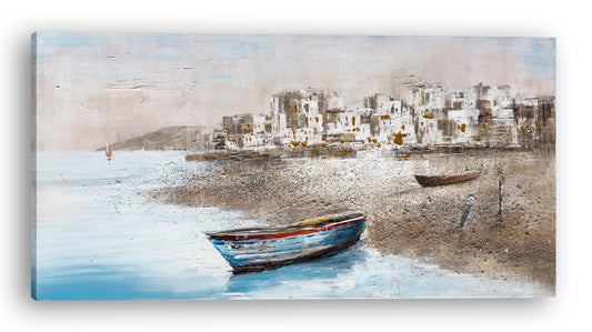 "Boats on the Sand" Hand Painted on Wrapped Canvas