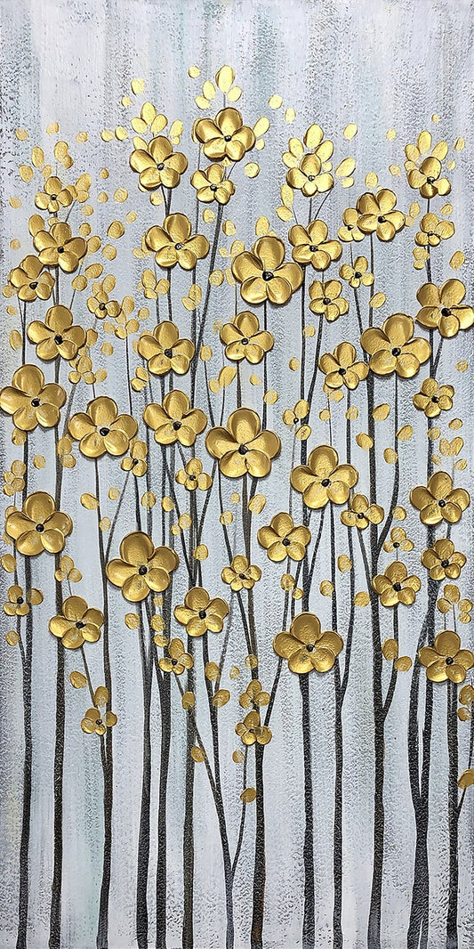 Original Art 'Golden Petals' Room Décor with Abstract Hand-Painted Wall Art