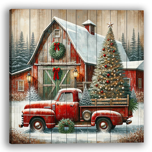 "Country Christmas Charm - Vintage Truck and Barn" Wrapped Canvas Art Prints