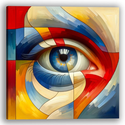 Visionary Gaze - Original Hand-Painted Abstract Eye Oil Painting - Cubist Art Inspired Canvas - Modern Home Decor - Unique Wall Art Piece