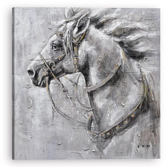 Hand-painted Art "Brave horse" Oil painting original, Canvas Wall art for living room, bedroom, office - Wrapped Canvas Painting