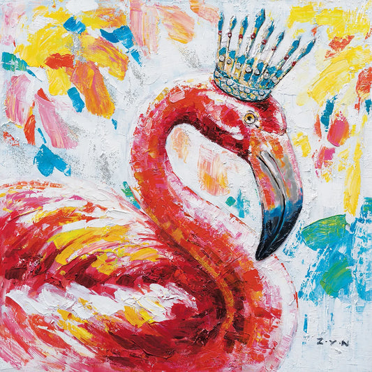 Original Art "Regal Flamingo" - Vibrant Crowned Bird Impasto Painting, Whimsical Wildlife Art, Colorful Tropical Decor Canvas