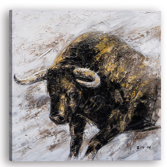 "Charging Bull Oil Painting" Hand Painted on Wrapped Canvas
