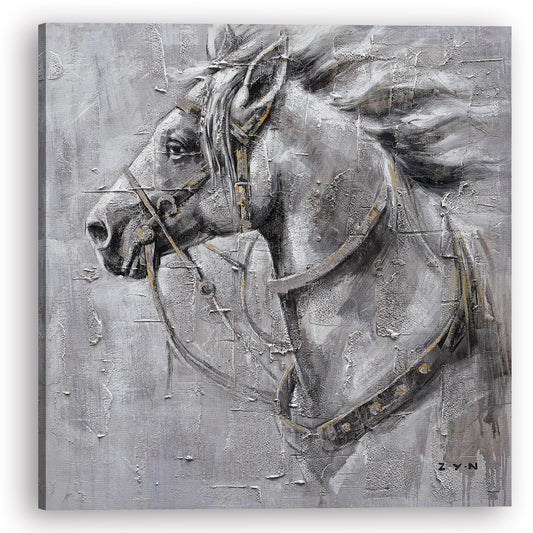 Hand-painted art "An Iron Horse" Oil Painting on Wrapped Canvas