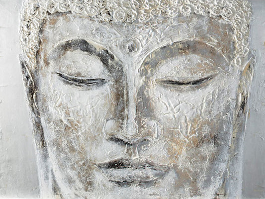 Hand Painted "White Buddha" Oil on Canvas Original, Canvas Wall Art for Living Room, Bedroom, Office, Bar - Wrapped Canvas Art