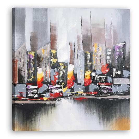 Hand-painted Abstract Art "City by the Sea" painting original, Canvas Wall art for living room, bedroom, office - Wrapped Canvas Painting