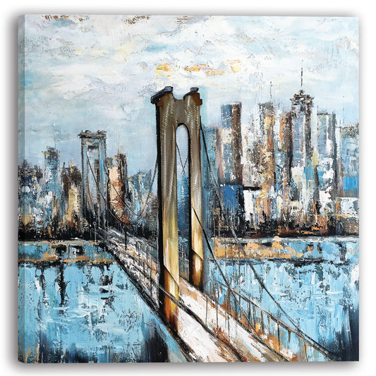 Original art "Urban Escape" - Hand-Painted Cityscape with Bridge, Textured Skyline Impasto, Metropolitan Decor Art