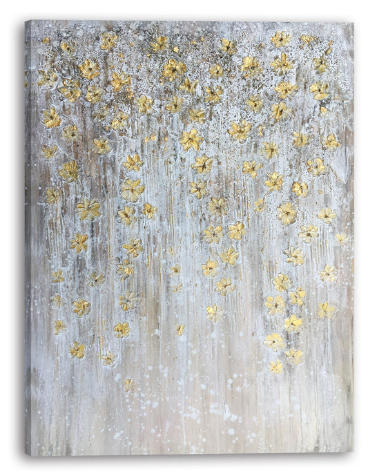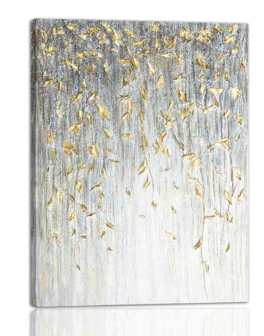 "Dangling Gold Leaves I" Hand Painted on Wrapped Canvas