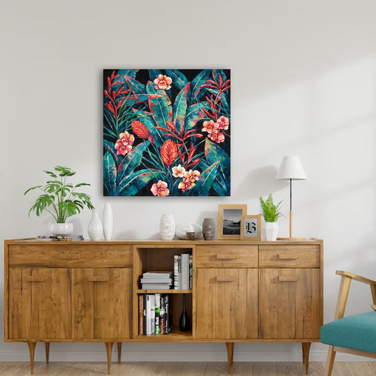Hand-painted on canvas original, Wall art for living room, bedroom, office "Hawaiian flowers" - Wrapped Canvas Painting