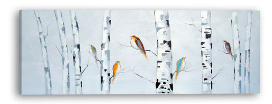 Hand-painted "Birds in the Forest" Modern art, oil painting on canvas, Wall art for living room, bedroom, office - Wrapped Canvas Painting