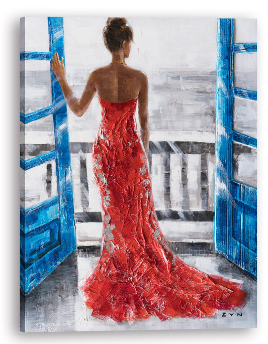 Hand-painted "Elegant girl" painting on canvas original, Canvas Wall art for living room, bedroom, office, Bar - Wrapped Canvas Painting