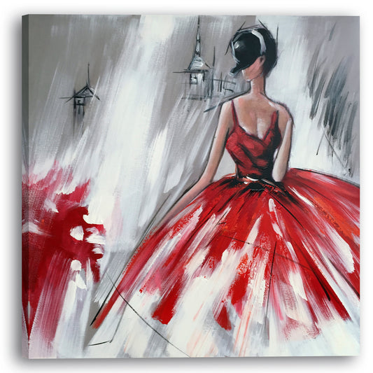 "Girl in Red Dress" Hand Painted on Wrapped Canvas