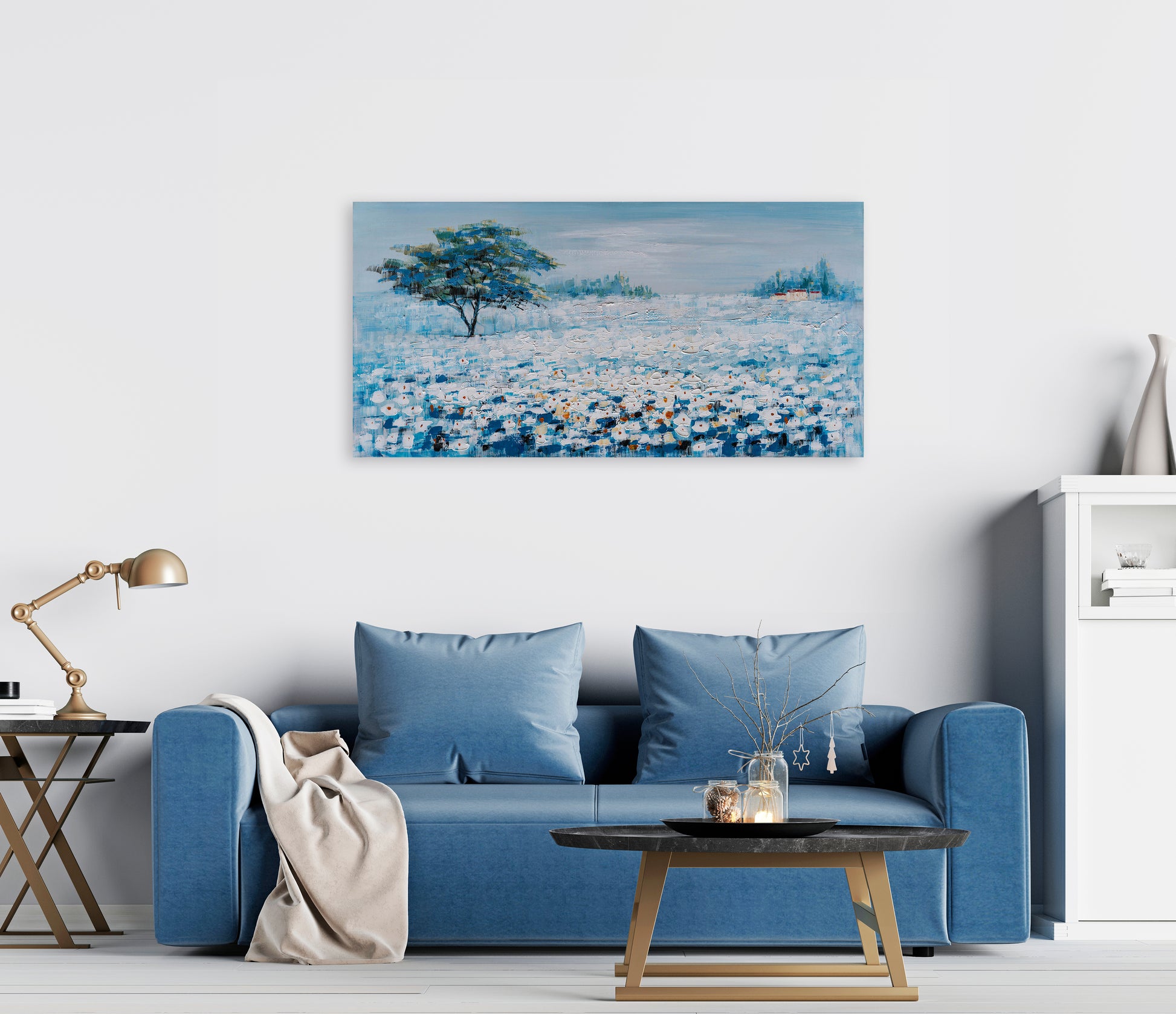 "A Blue Flower Field I" Hand Painted on Wrapped Canvas