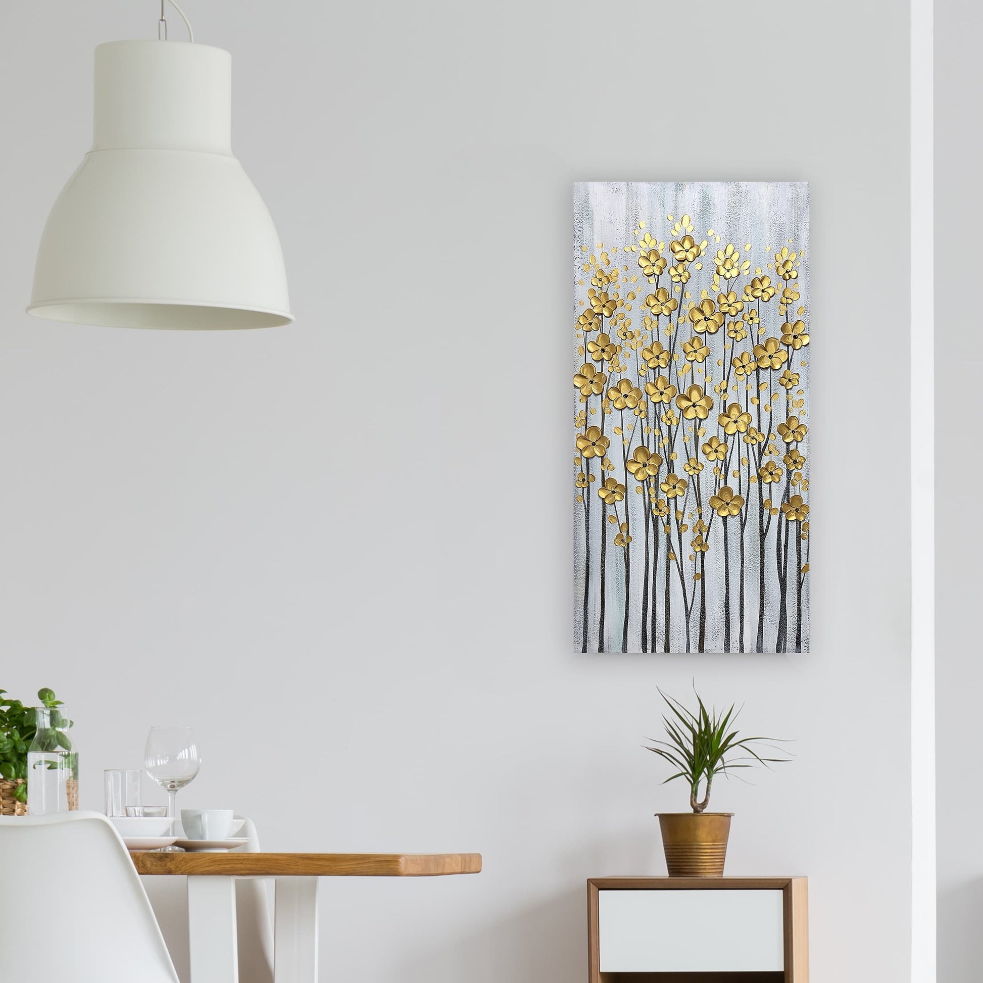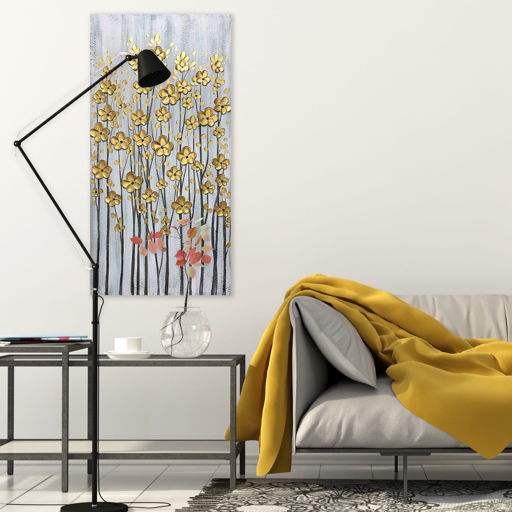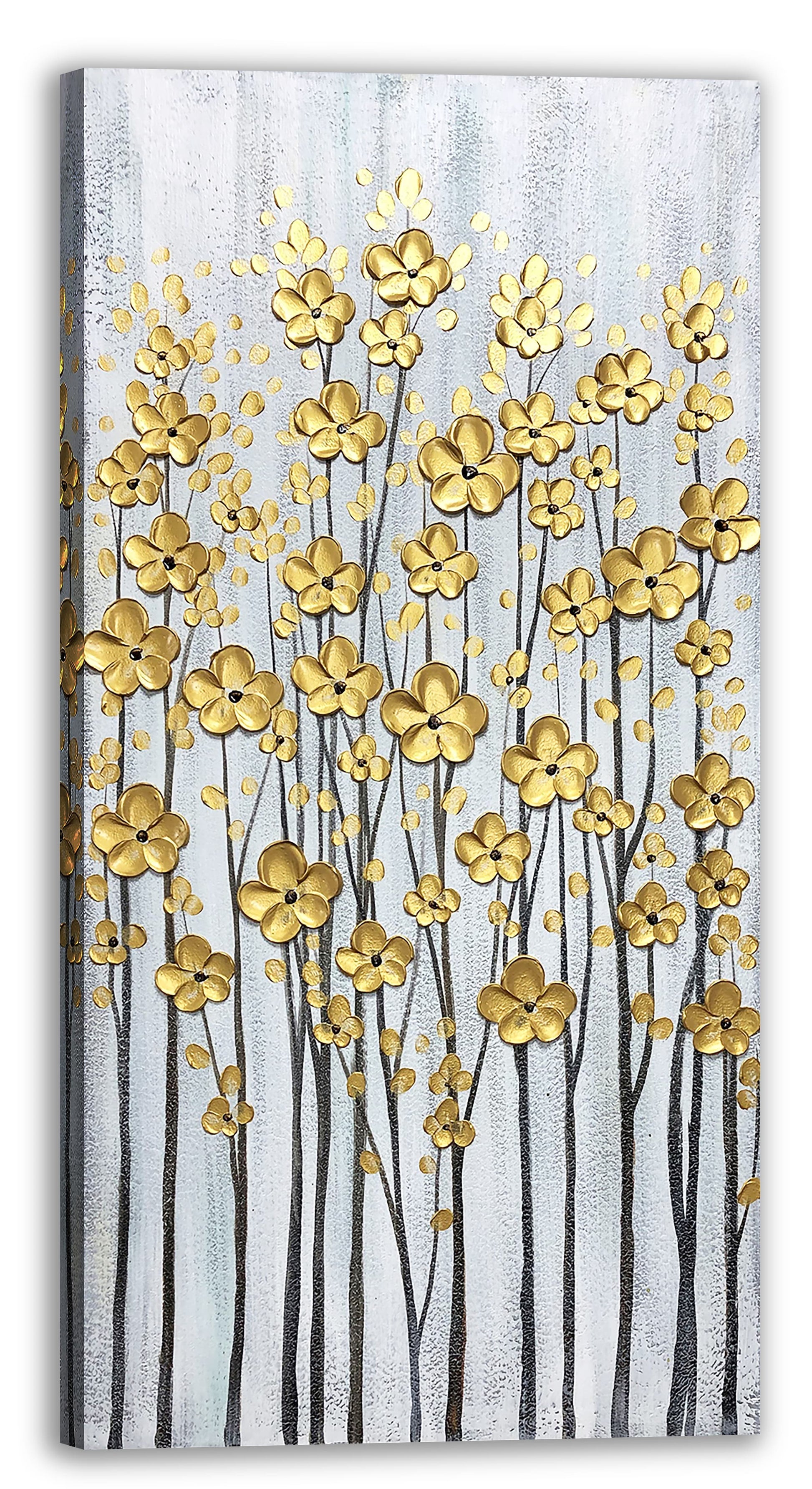 With "Aureate Blooms," you bring home more than just a painting; you bring a statement of luxury and a daily reminder of nature's effortless grace. Its universal appeal makes it an ideal gift for a loved one or a magnificent centerpiece for your own home. This piece is available for a limited time only. Elevate your surroundings with the golden touch of "Aureate Blooms" and let your walls bloom with richness.