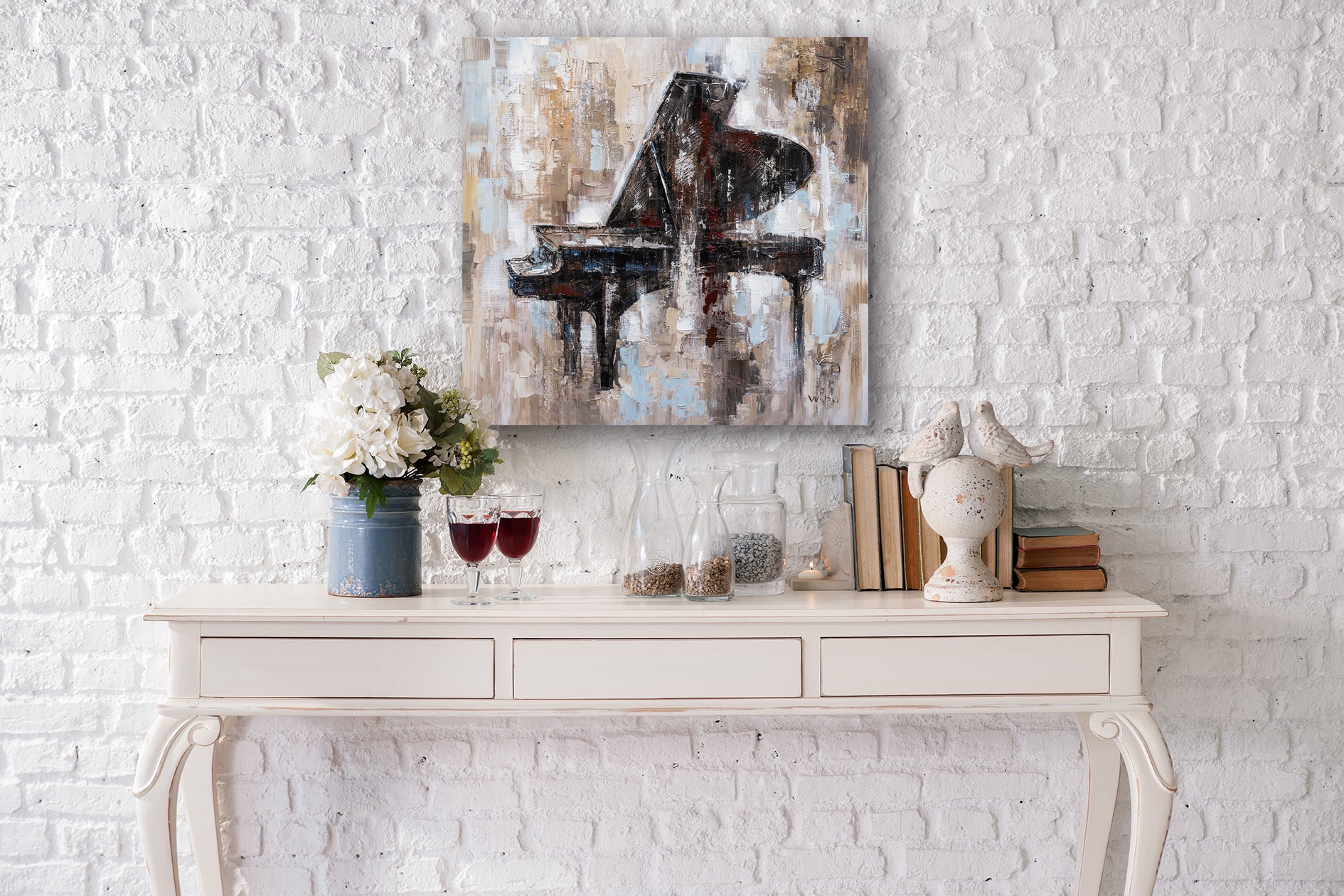 Oozing with mood and mystique, this richly colored piano Framed Oil Painting Print on Wrapped Canvas has a beautiful oil painting ring to it. Love how it tickles the ivories in grand style.