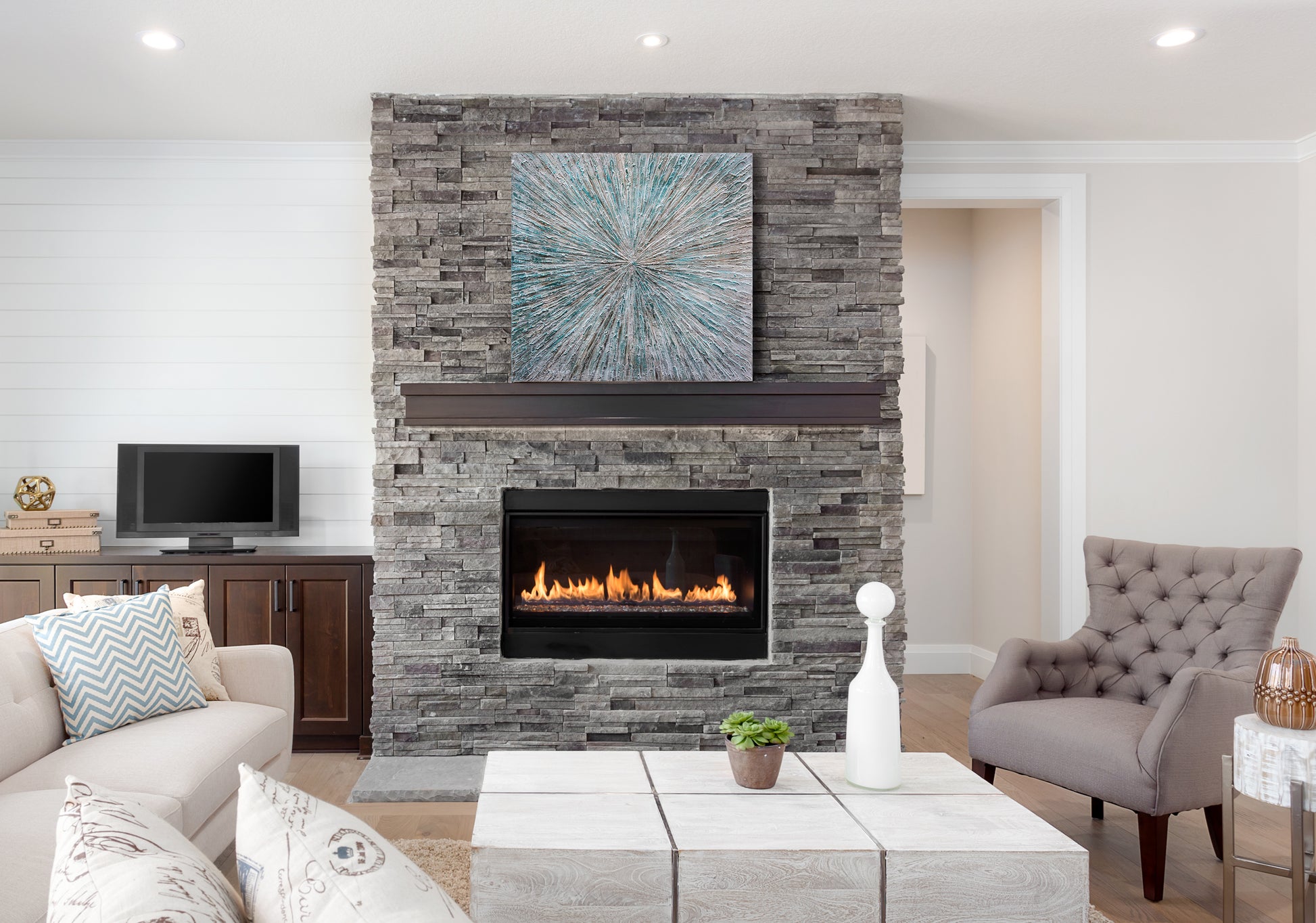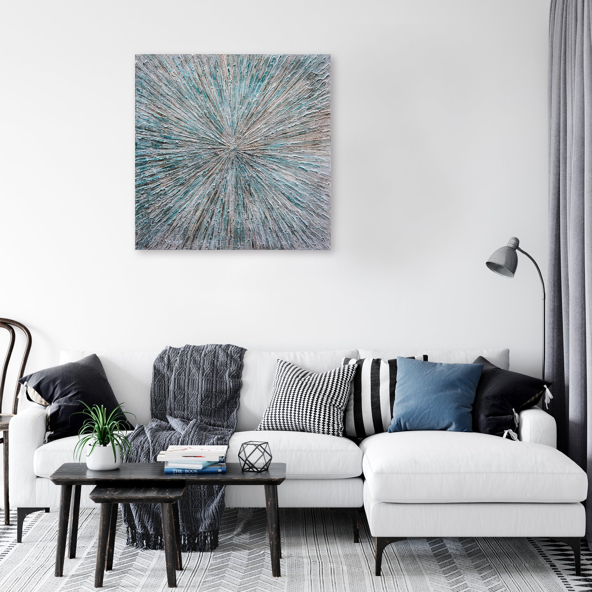 This beautiful piece of hand-painted contemporary artwork was made using oil paints on canvas. Perfect for your living room, dining room or even your office space.