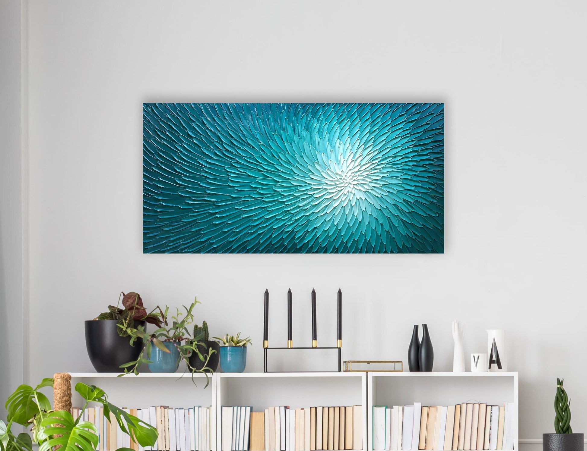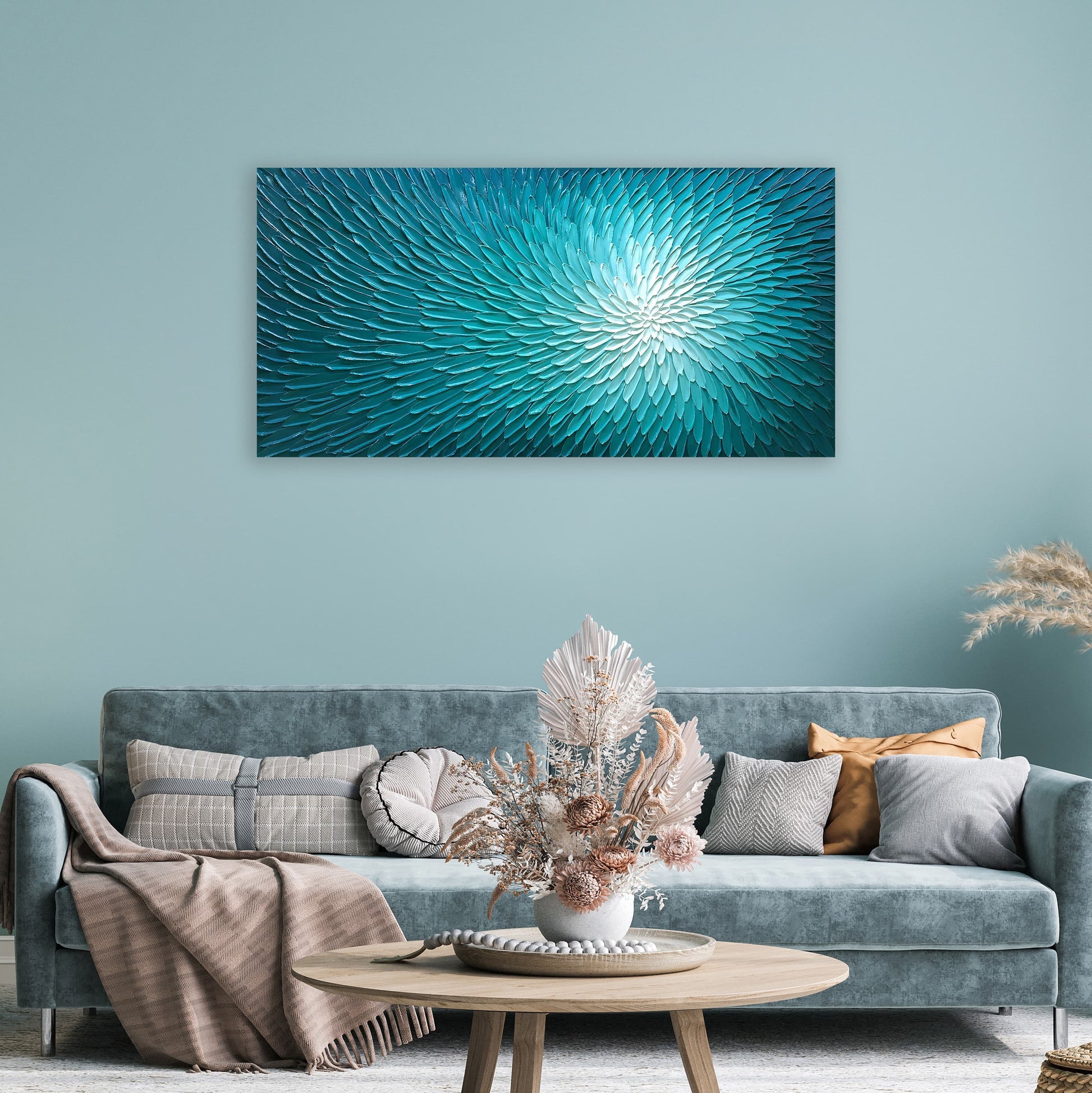 Immerse yourself in the serene beauty of "Aquatic Bloom," a masterpiece that captures the tranquil essence of the underwater world. This exquisite piece brings a harmonious blend of design and color to your space, evoking the graceful dance of ocean flora swaying to the gentle currents.