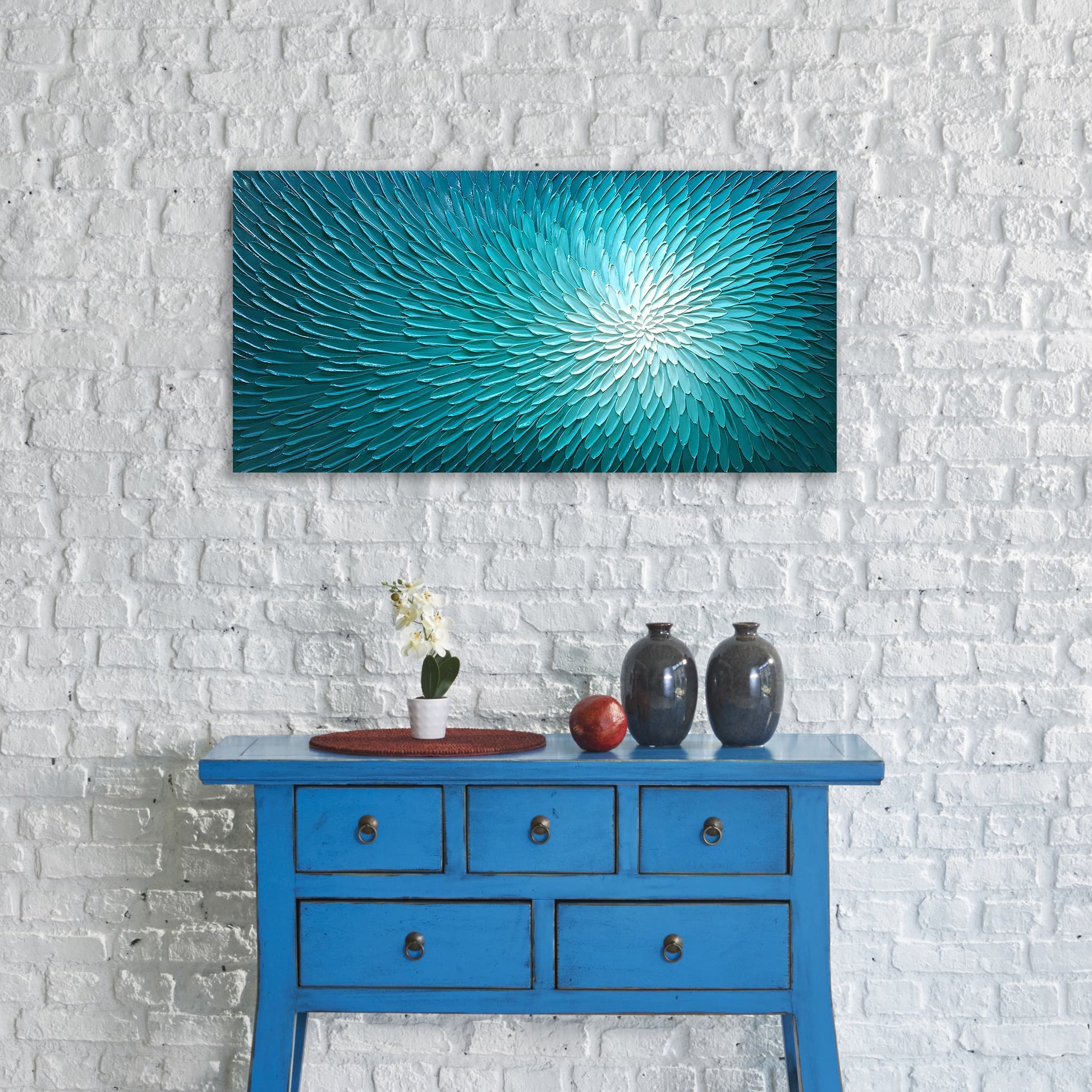 "Aquatic Bloom" hand-painted on wrapped canvas, wall art for Home decor