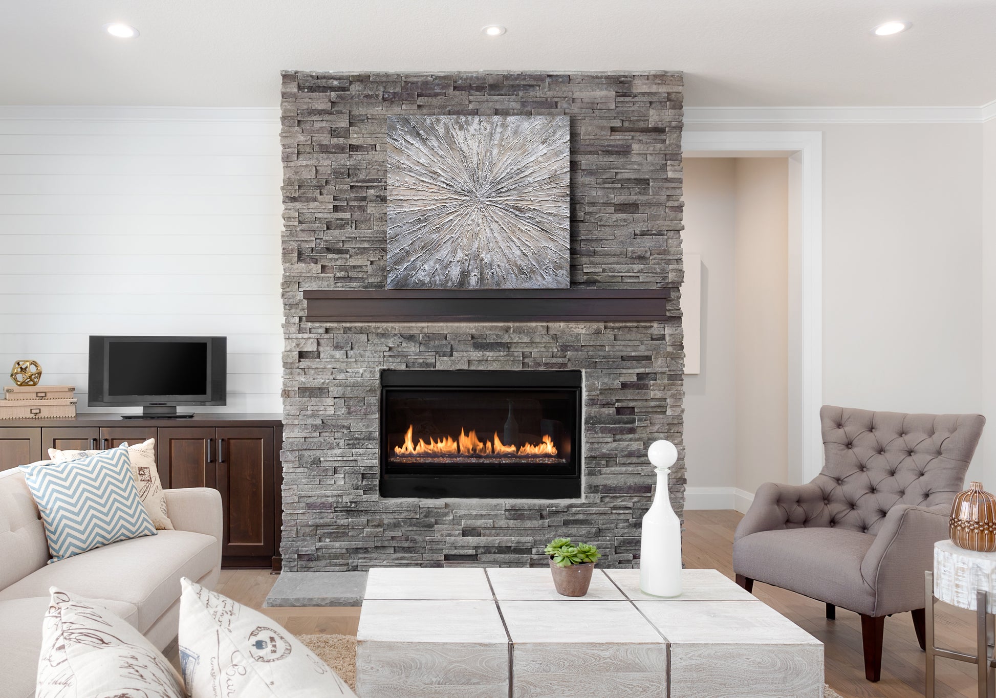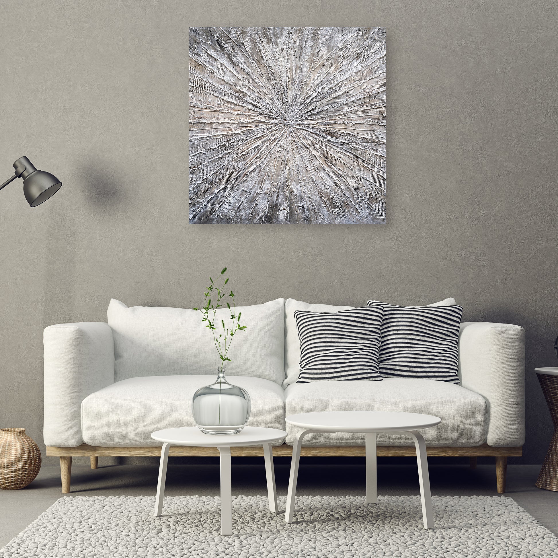 This beautiful piece of hand-painted contemporary artwork was made using oil paints on canvas. Perfect for your living room, dining room or even your office space.
