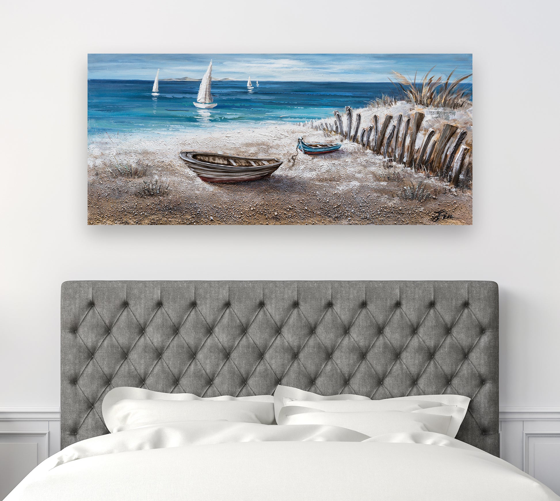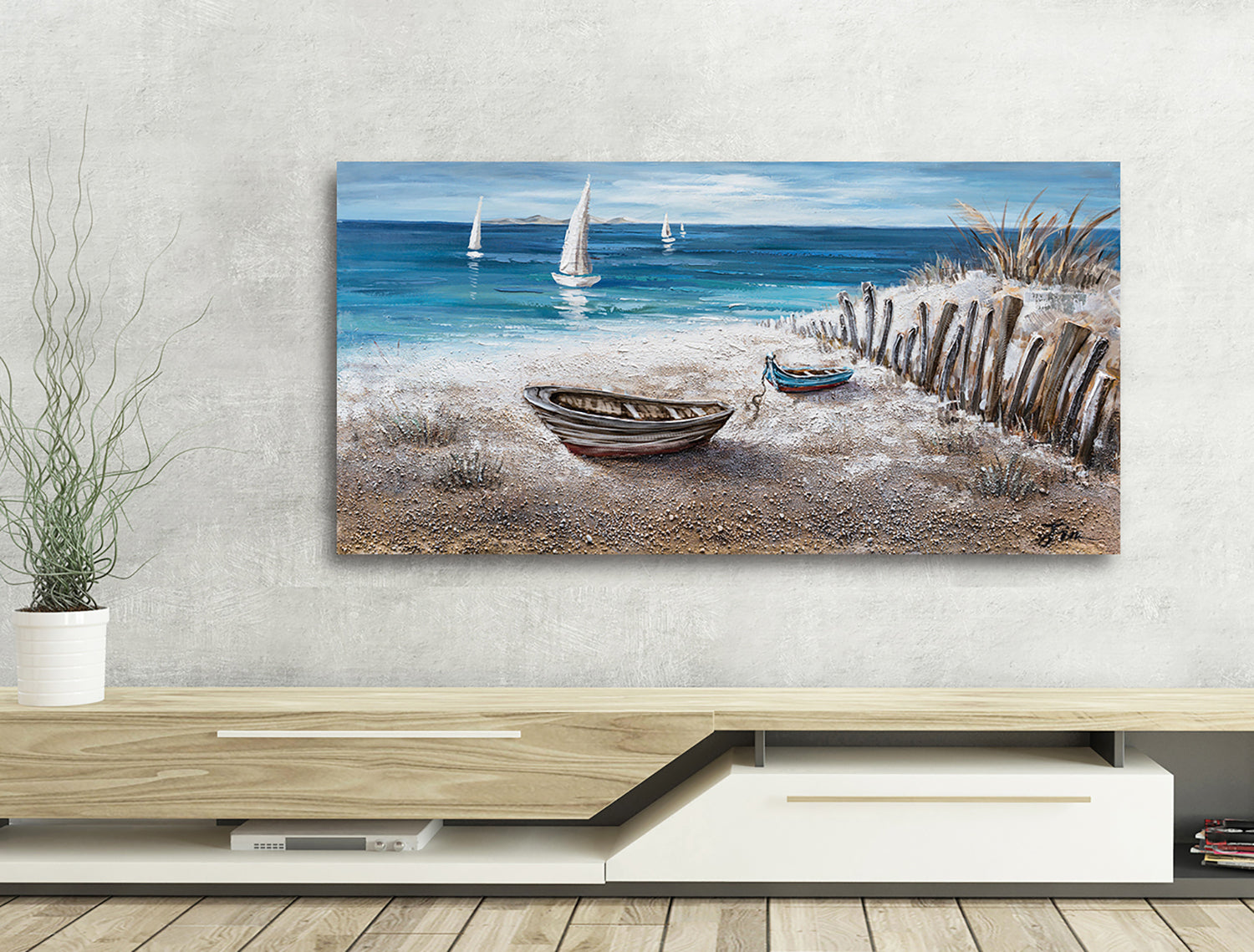 "Boats on the Sand" Hand Painted on Wrapped Canvas