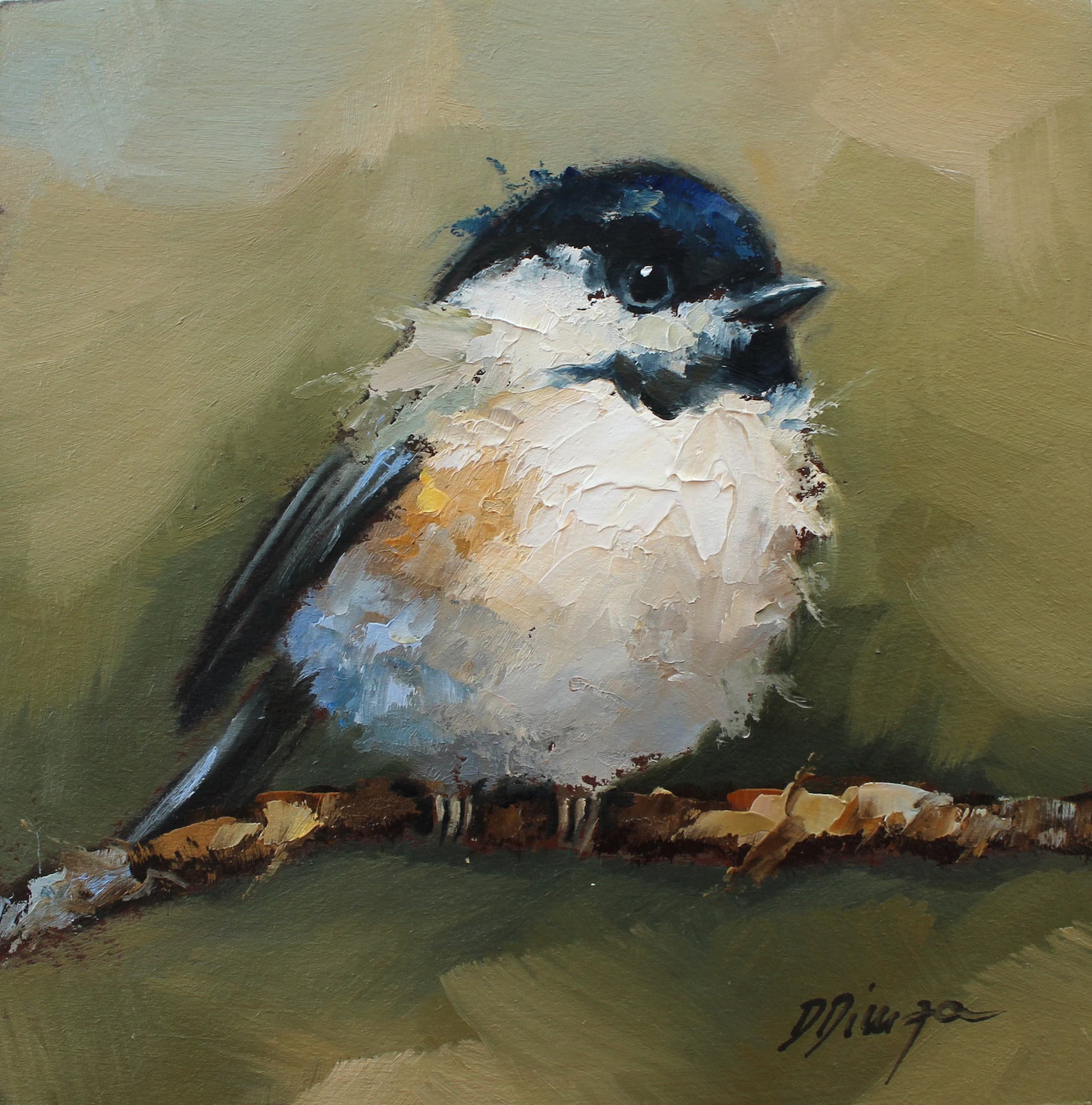 Chickadee bird CUSTOM original oil painting by Daiga Dimza Handmade Bird Wall art Fine gift for her Miniature artwork