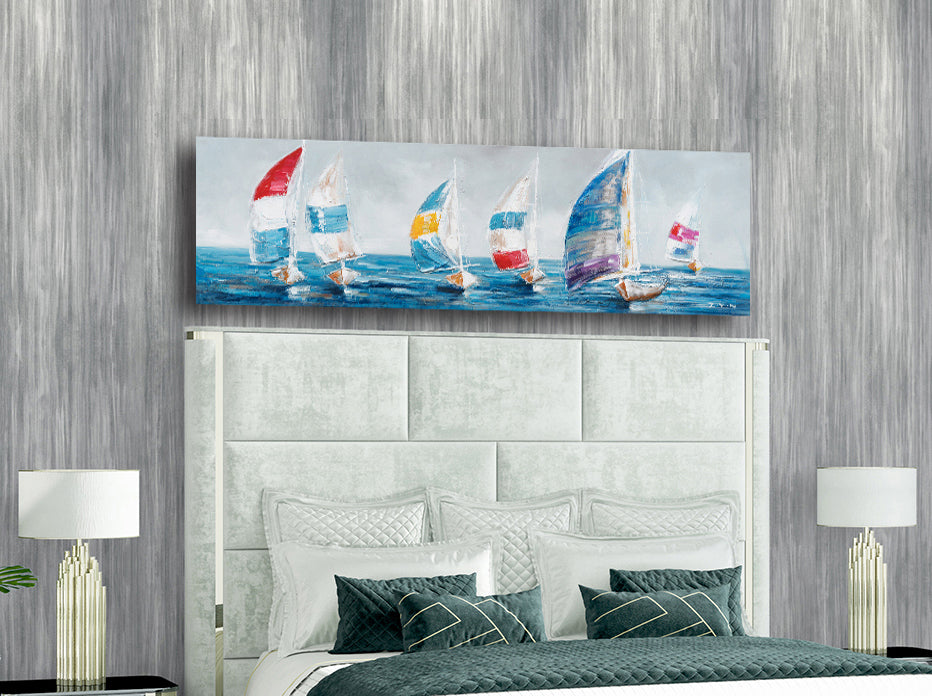 "Colorful Sailboats I" Hand Painted on Wrapped Canvas