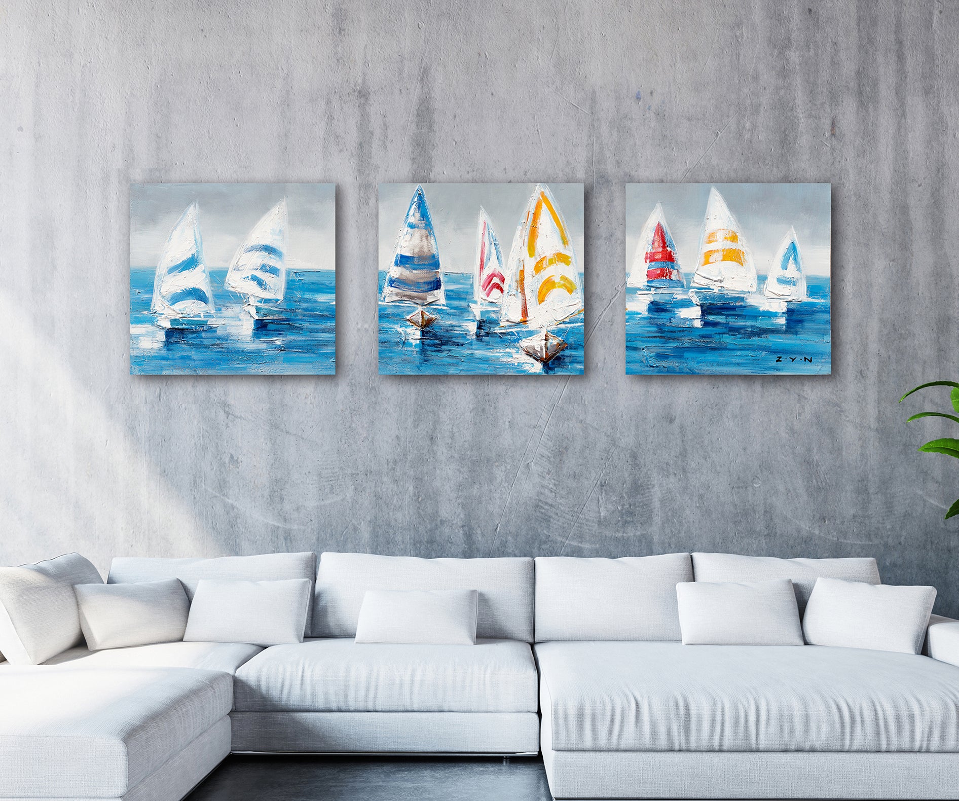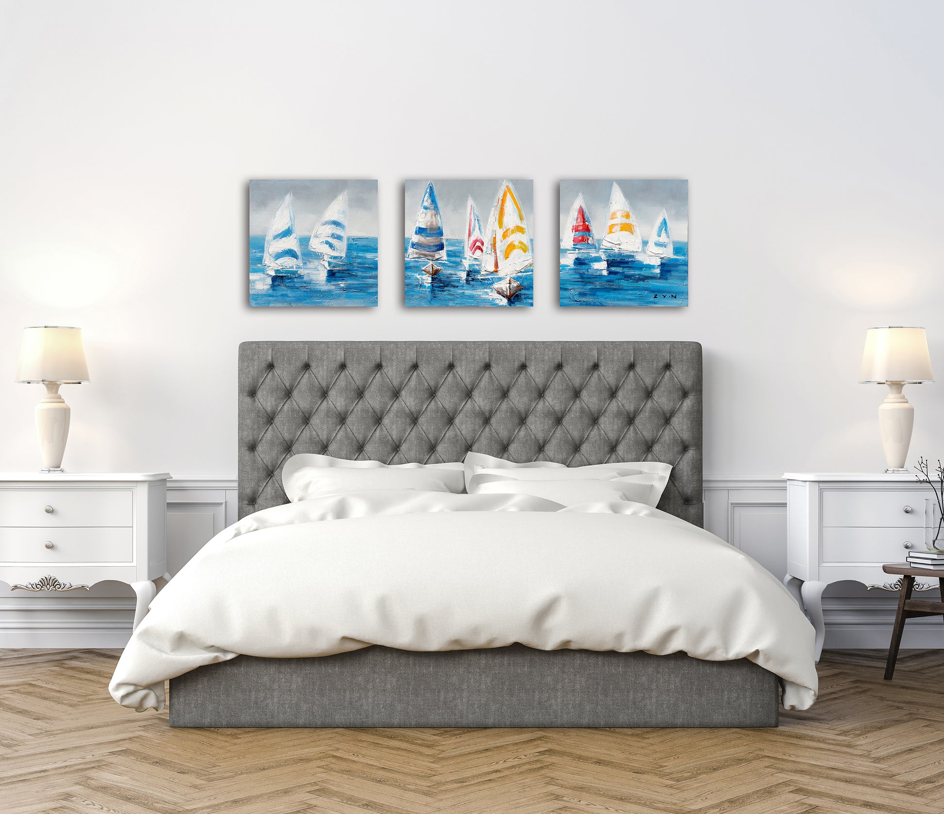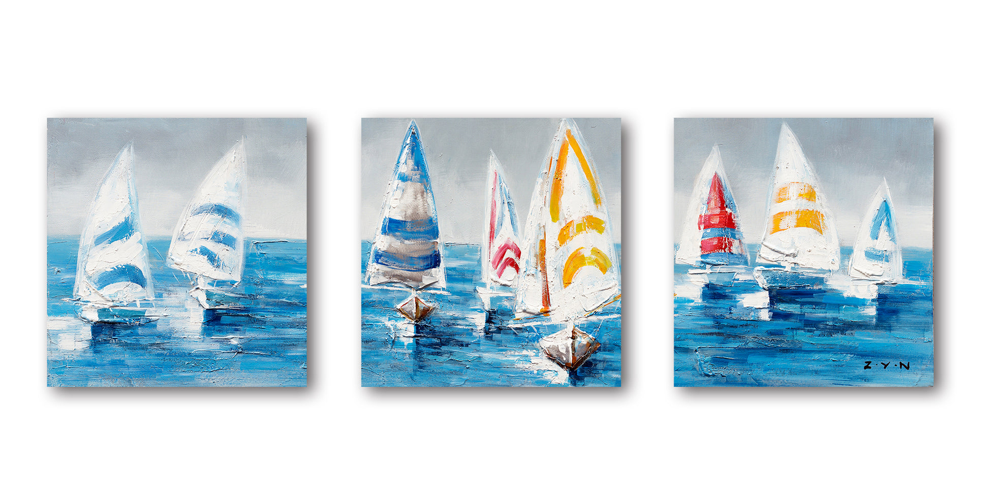 "Colorful Sailboats II" Hand Painted on Wrapped Canvas