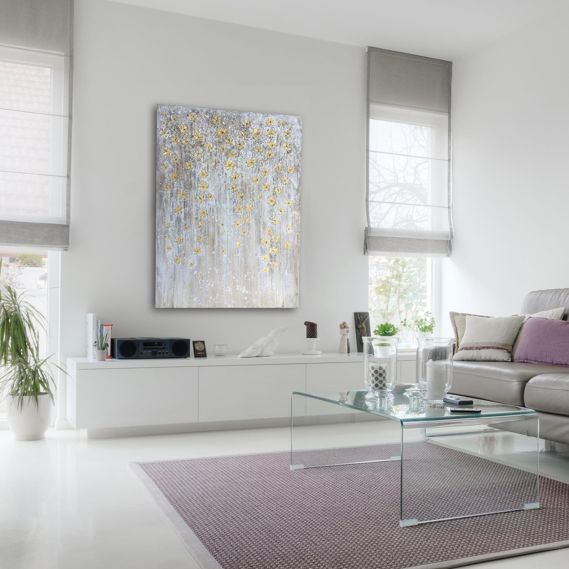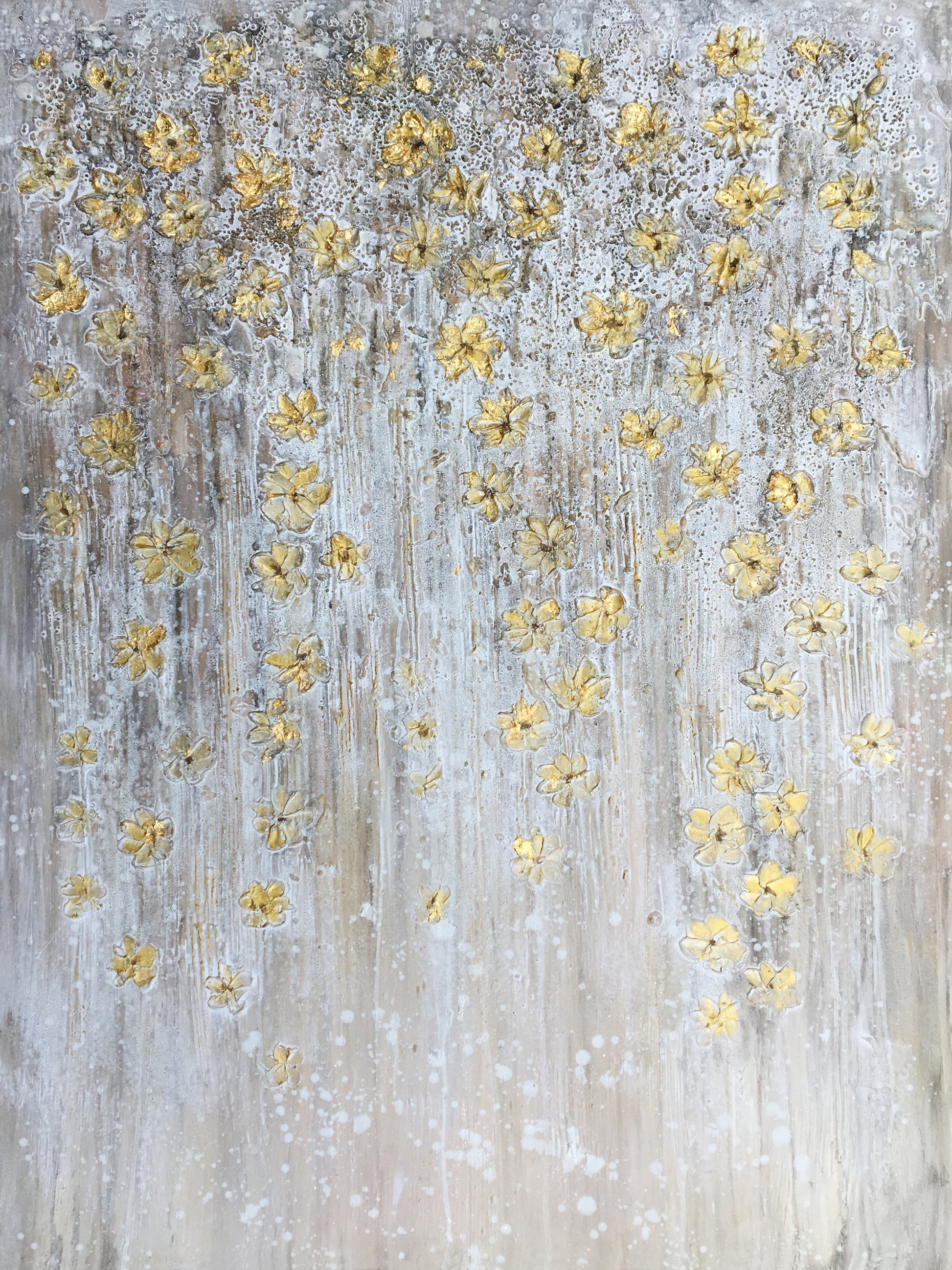 "Dangling Gold Leaves II" Hand Painted on Wrapped Canvas