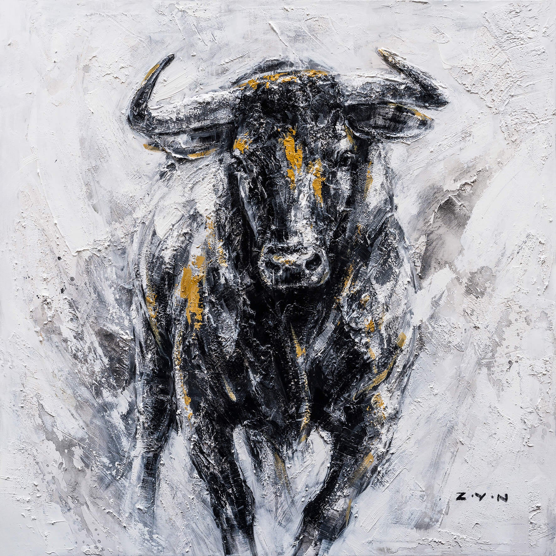 "Fearless Bull Oil Painting" Hand Painted On Wrapped Canvas