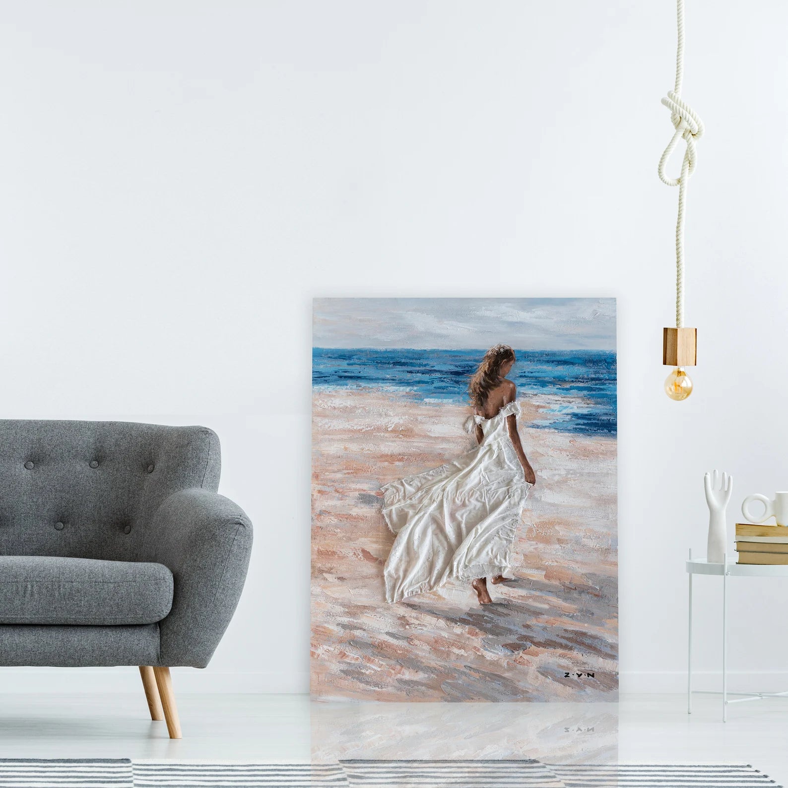 Gallery Art "Barefoot Girl on the Beach" Original Oil Paintings, Wall art for living room, bedroom - Wrapped Canvas Painting
