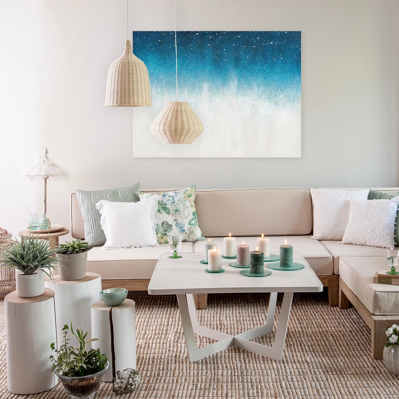 Hand Painted Abstract Art "Stars in the Blue Sky" painting original, wall art for Living Room, Bedroom, Office - Wrapped Canvas Painting
