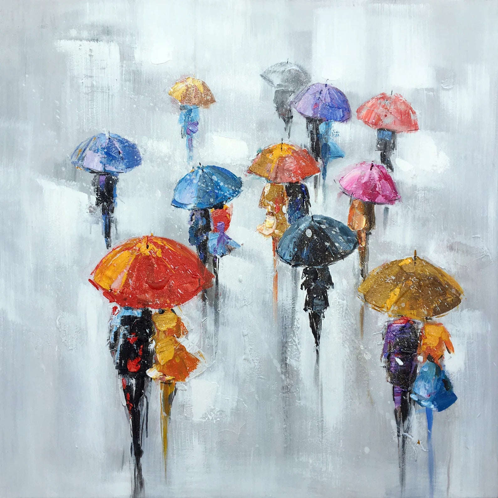 Hand-painted Abstract Art "Umbrellas in the City" painting original, Wall art for living room, bedroom, office - Wrapped Canvas Painting