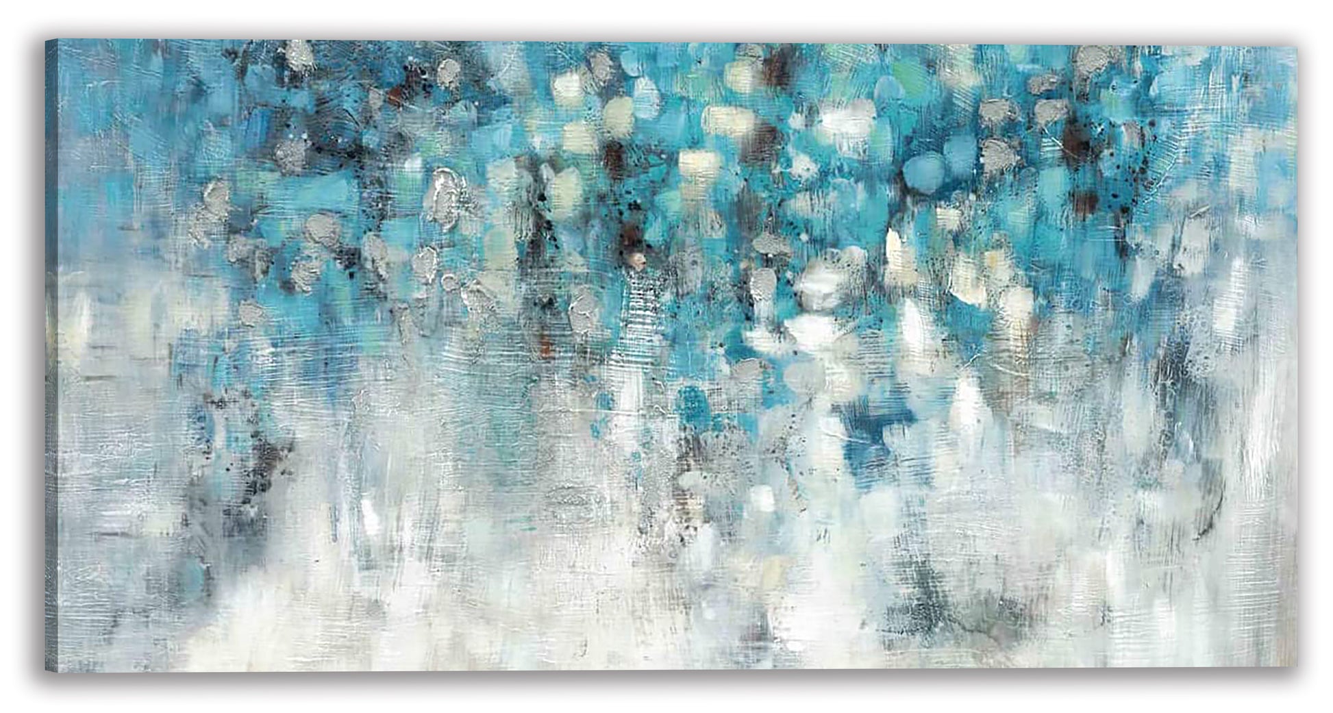 Empty entryway wall? Some spare space in the master suite? A boring bathroom? Wall art instantly turns any blank area into an eye-catching display, all while lending gallery-worthy appeal to your abode. Just take a look at this piece for example It features abstract oil paintings, showcasing Blue Rain. Oil painting on gallery-wrapped canvas can be hung either horizontally or vertically and arrives with two wall hooks for easy mounting.