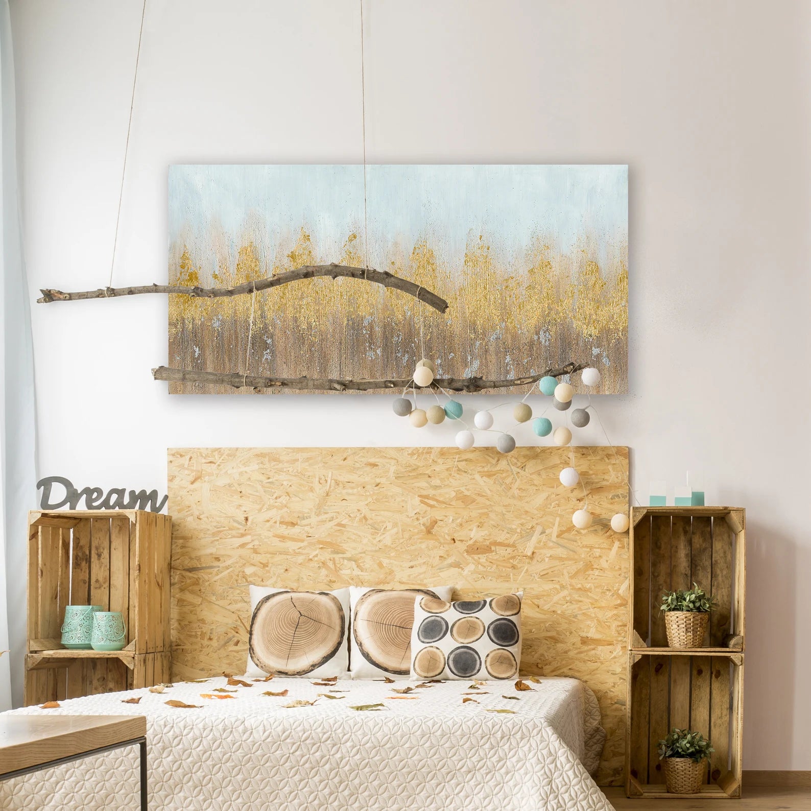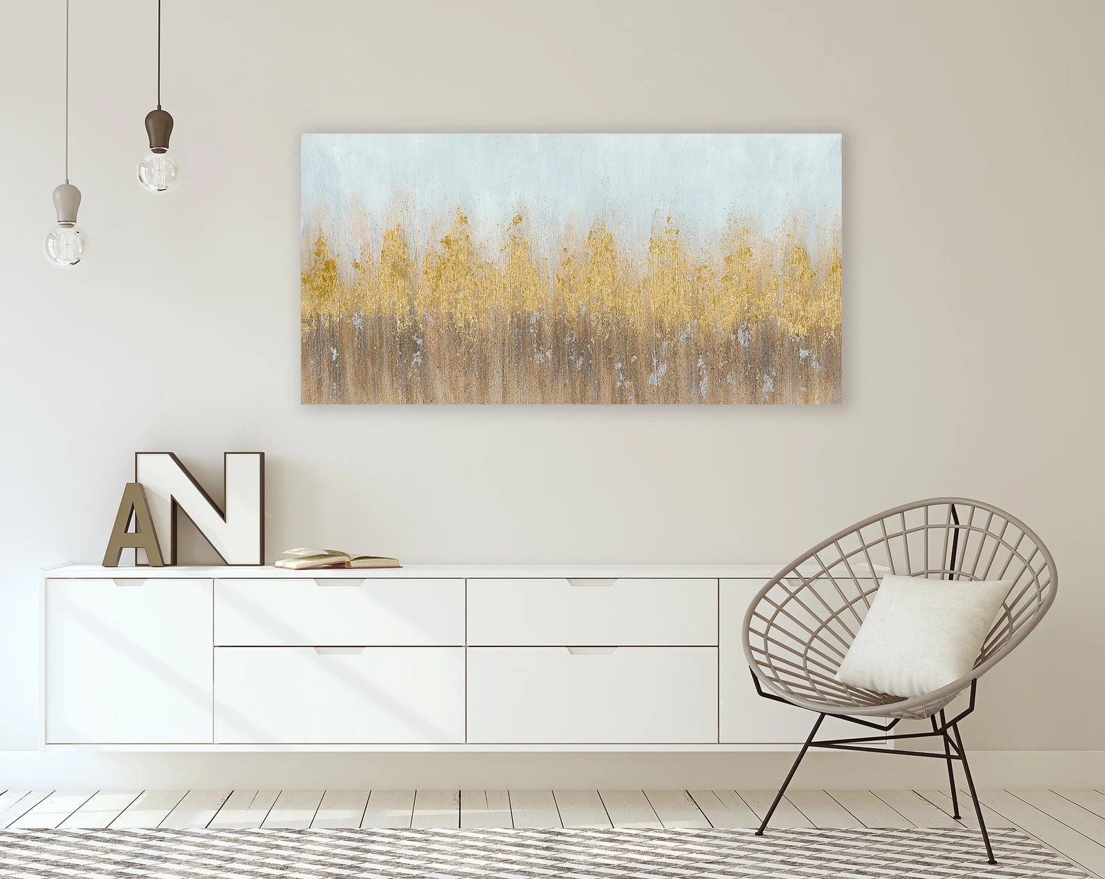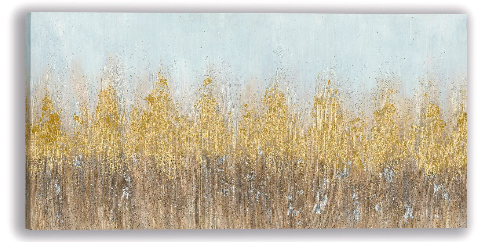 Hand Painted "Abstract Gold grove Trees" Oil painting original art, wall art for Living Room, Bedroom, Office - Wrapped Canvas Painting