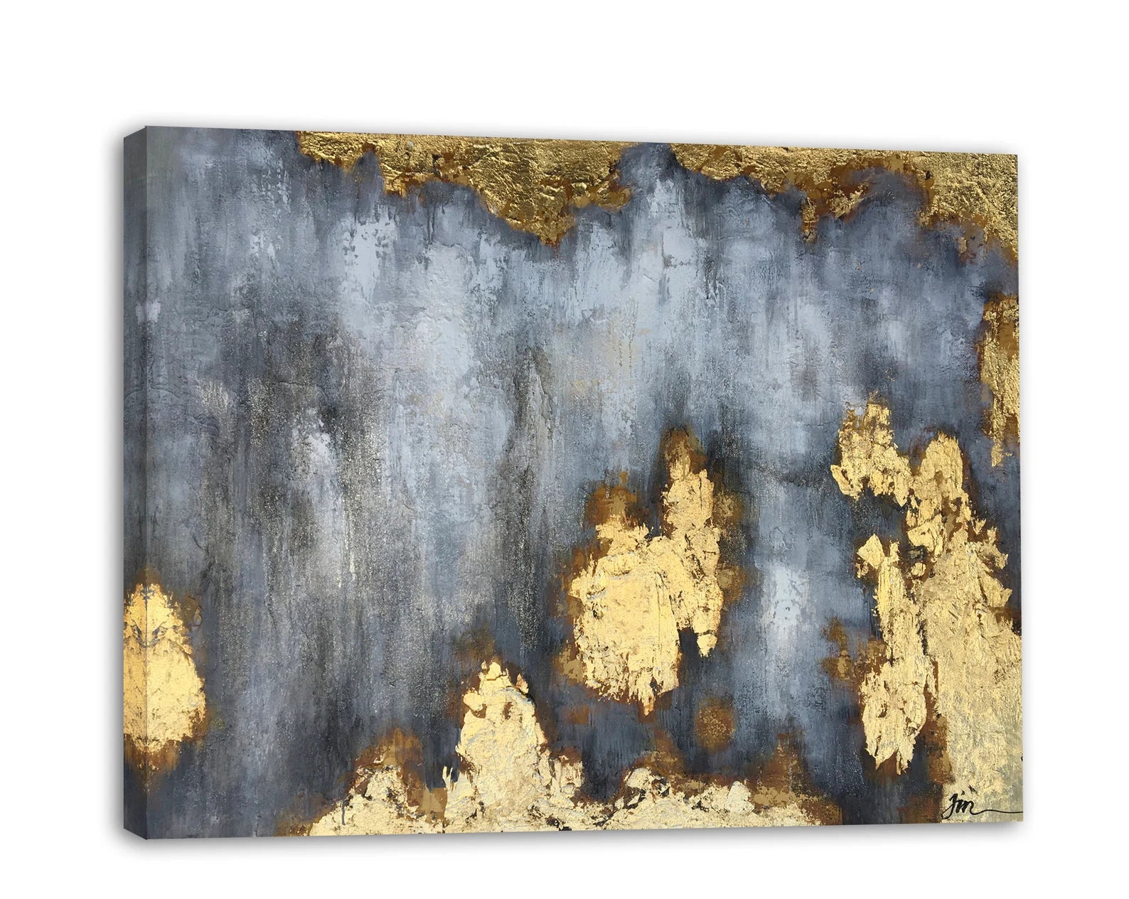 Hand Painted "Abstract Gold Map" painting on canvas original Canvas Wall art for living room bedroom, office, bar - Wrapped Canvas Painting