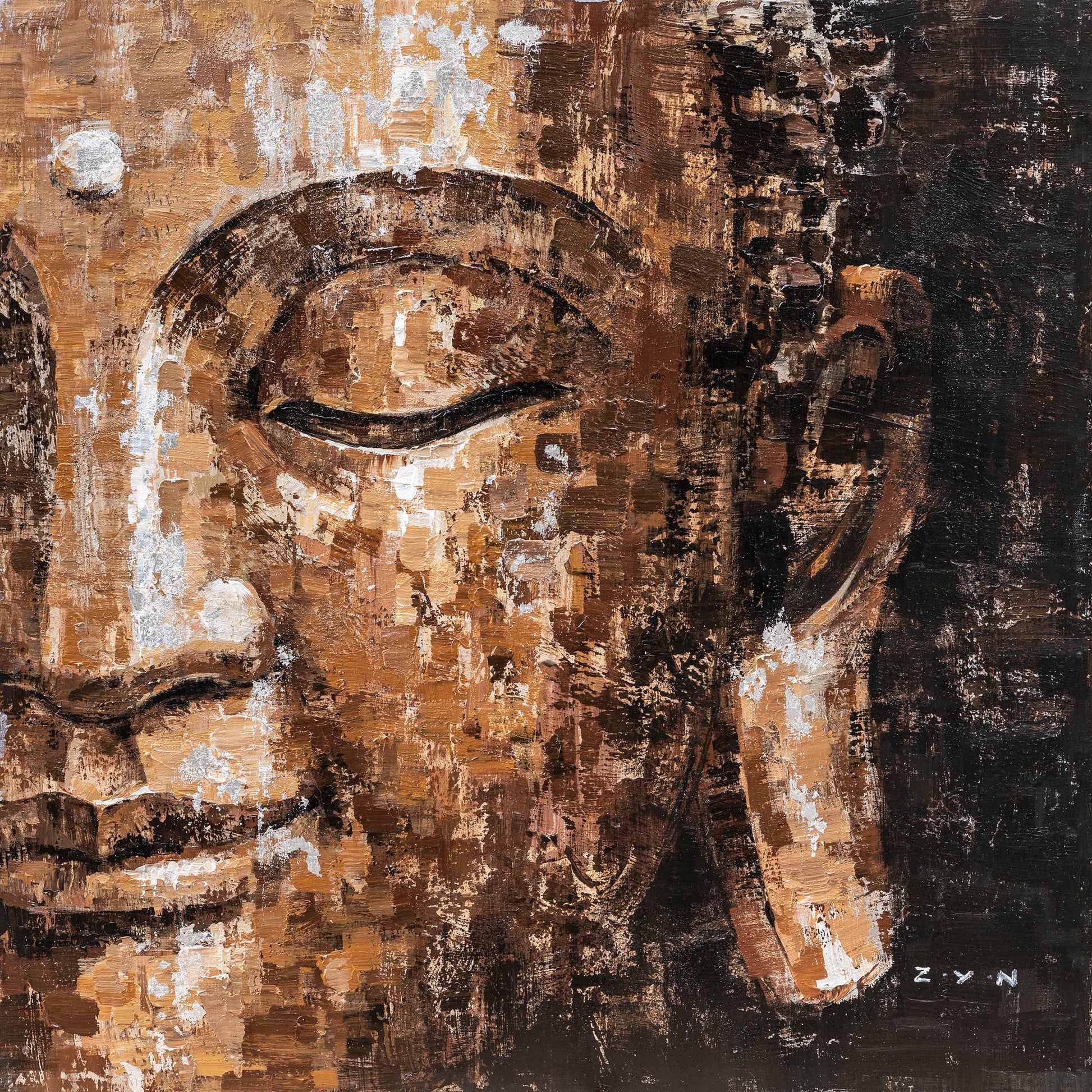 Hand-painted "Abstract Golden Buddha" Oil painting on canvas original, Canvas Wall art, wall decor - Wrapped Canvas Painting