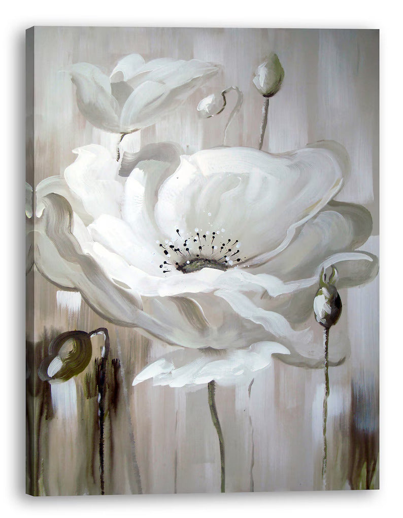 Hand-painted art "Abstract Flower Lotus" Oil painting, Canvas Wall art for living room, bedroom, office - Wrapped Canvas Painting
