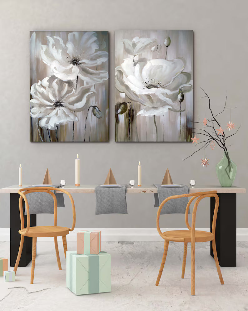 The painting has several layers of color and has lots of movement and brush strokes on it. The painting is professionally hand-stretched on high-quality stretch bar and ready to hang out of the box. Great size gallery-wrapped canvas that works in a variety of rooms. Every single piece of our art is one of a kind piece because of the handcrafted nature of the painting.