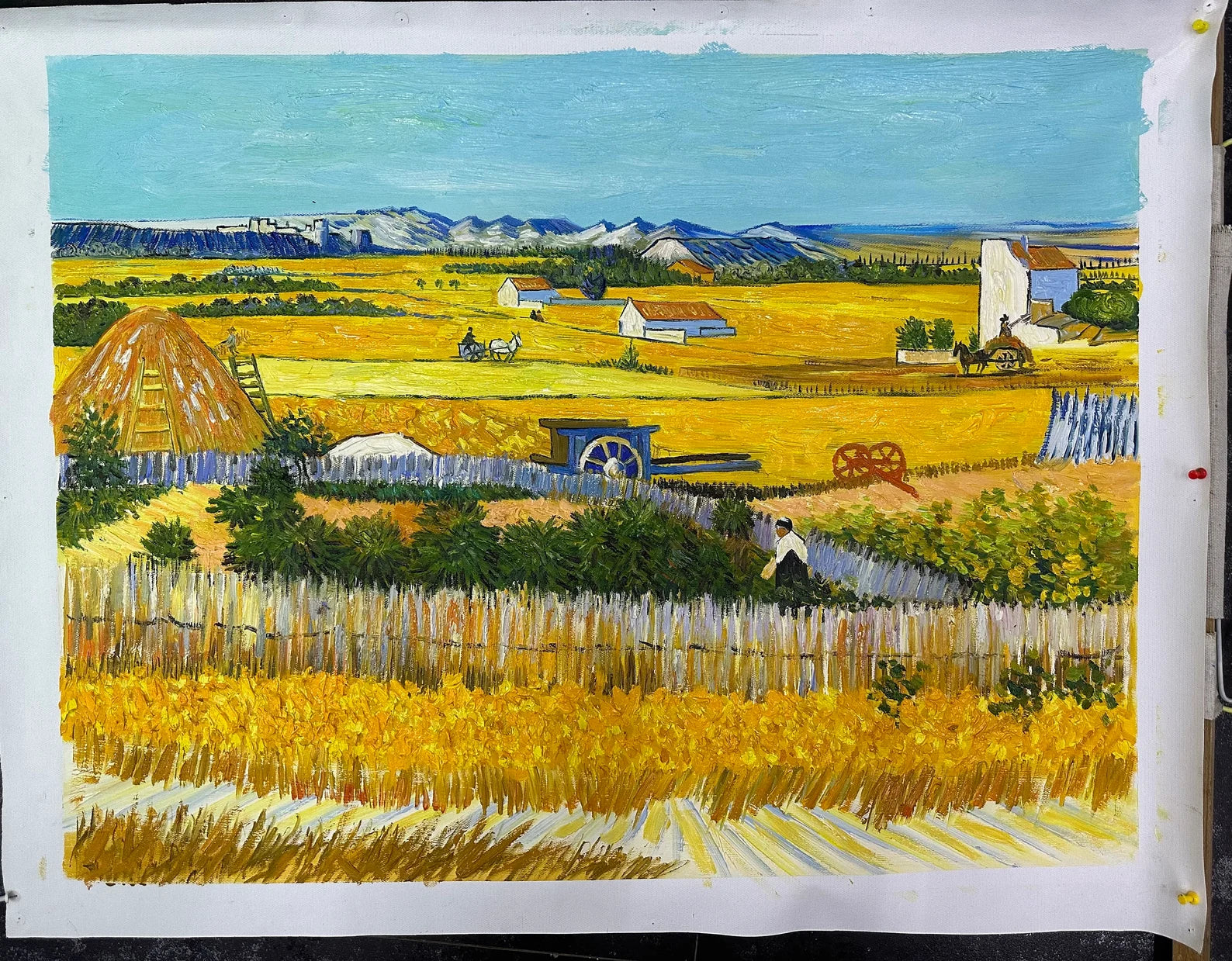 Hand-painted art " De oogst " by Vincent Van Gogh, high quality reproduction of - Wrapped Canvas Painting