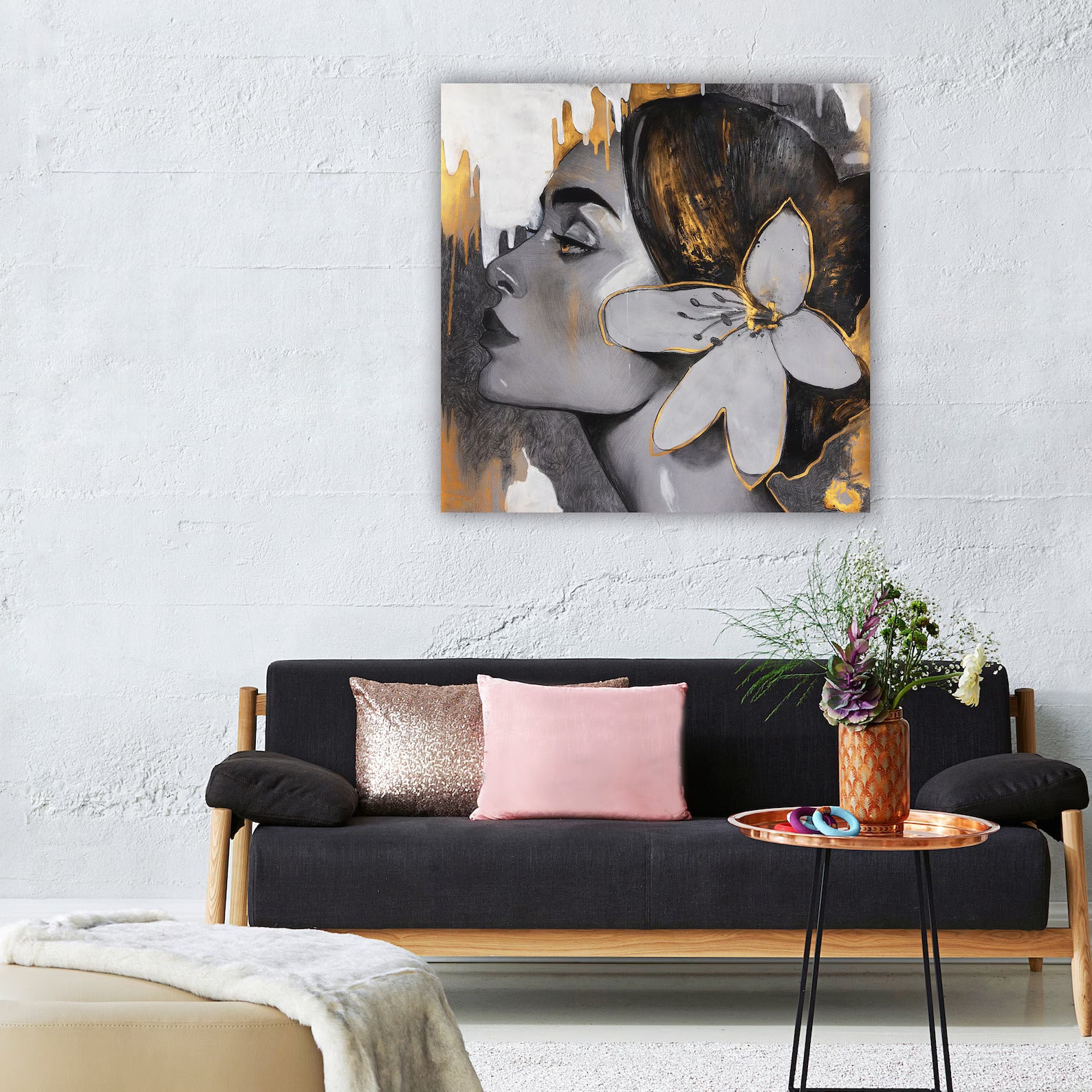 Hand-painted Art "Golden Woman" painting on canvas, Wall art for living room, bedroom, office - Wrapped Canvas Painting