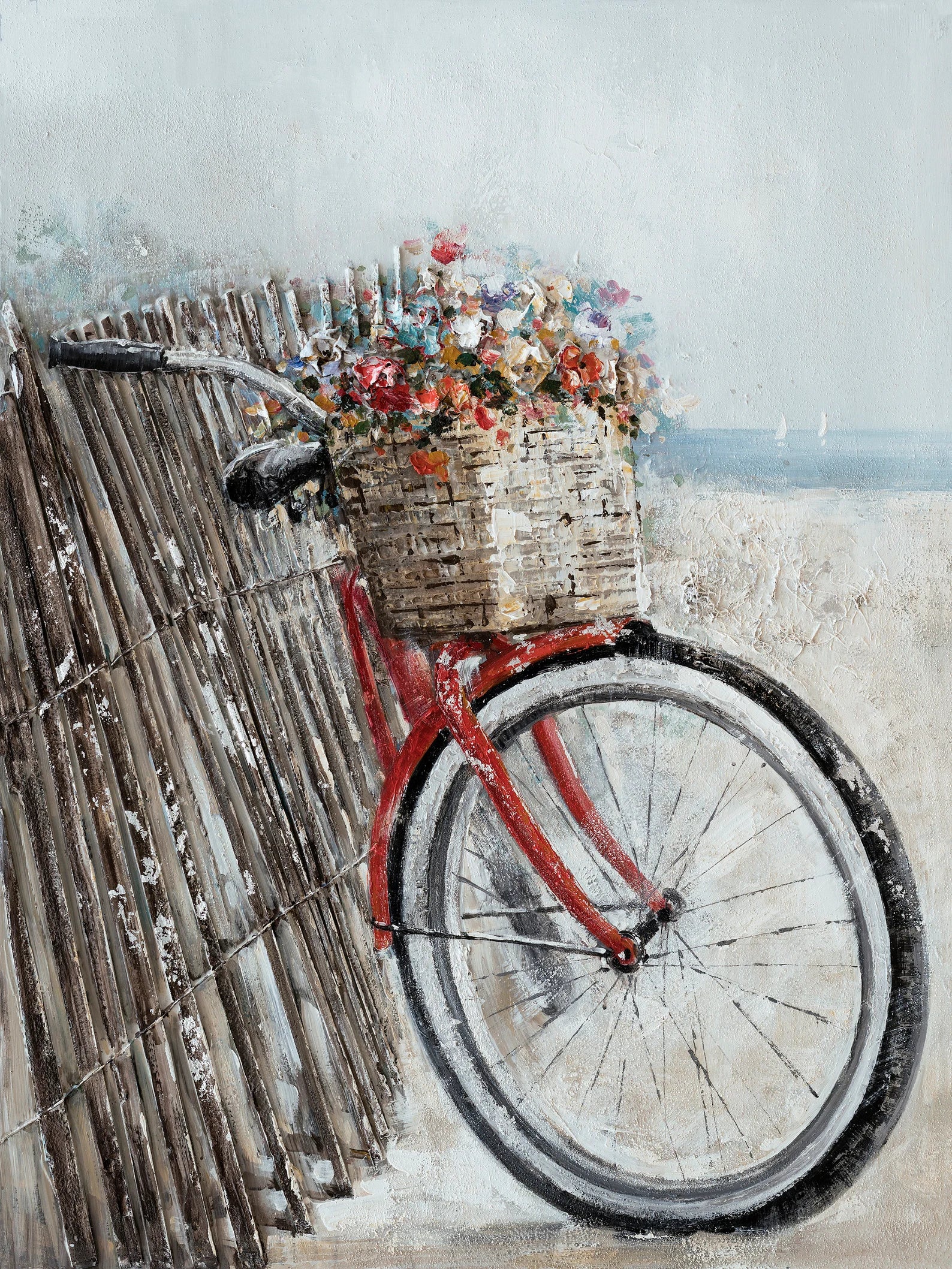 Hand Painted "Bicycle Full of Flowers" coastal original artwork, Canvas wall art for living room, entryway - Wrapped Canvas Painting