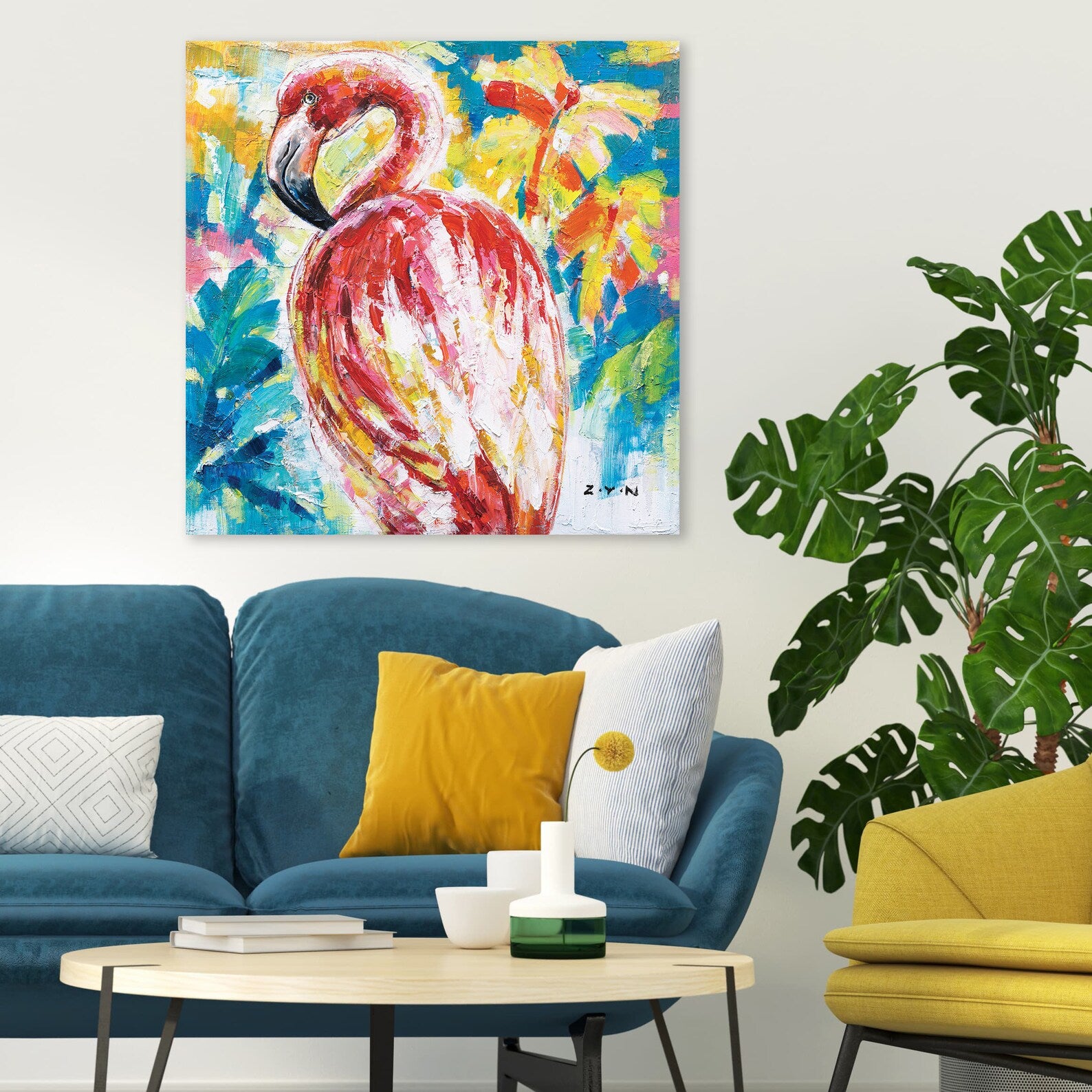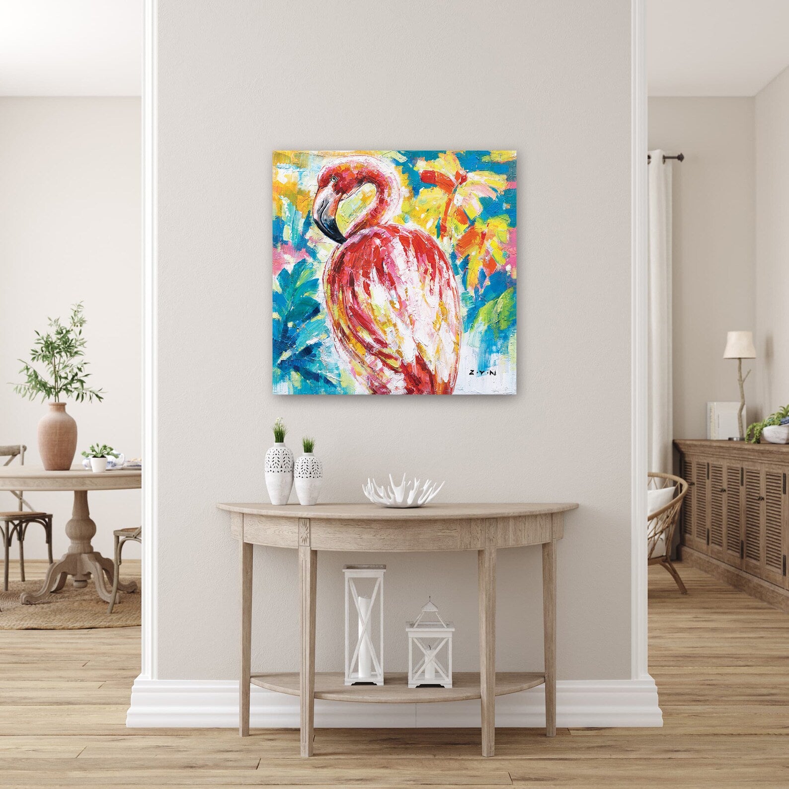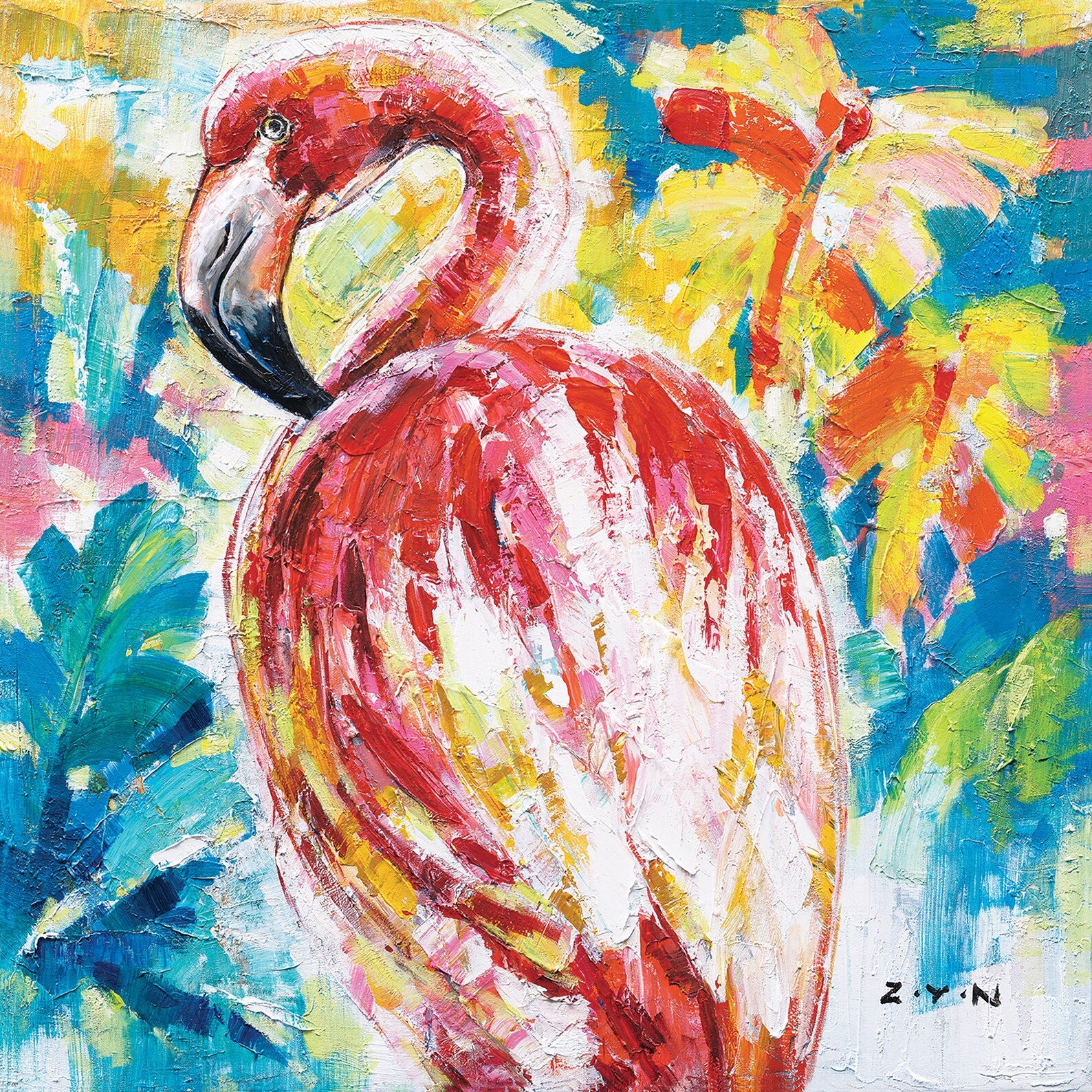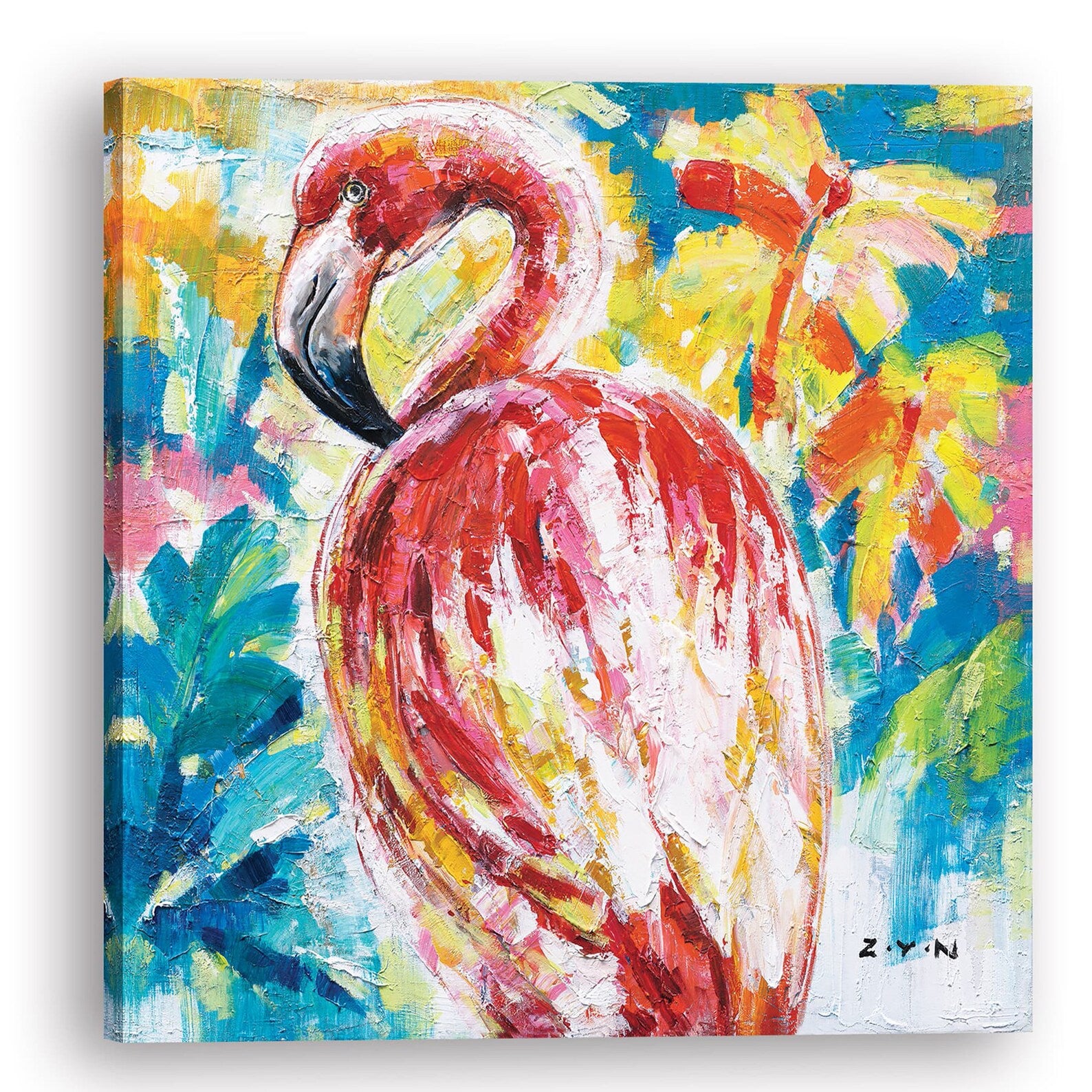 Hand Painted Birds Art "American Flamingo" Painting Original, Wall Art for Living Room, Bedroom, Entrance - Wrapped Canvas